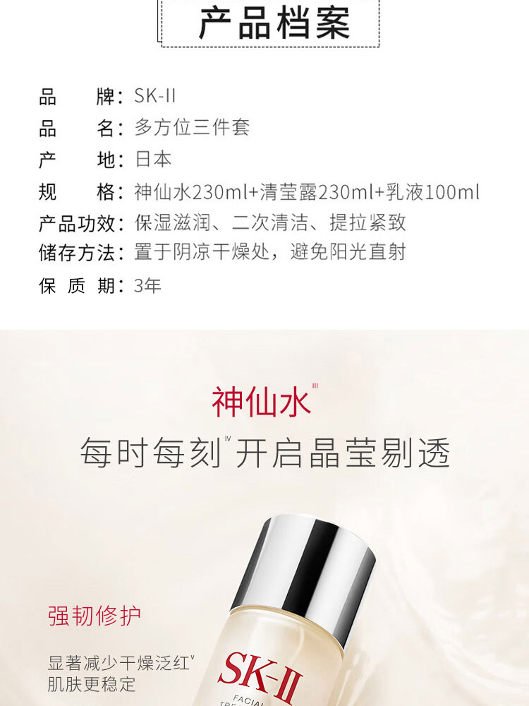 SK-II 多方位护肤套装(神仙水230ml+清莹露230ml+骨胶原乳液100g)
