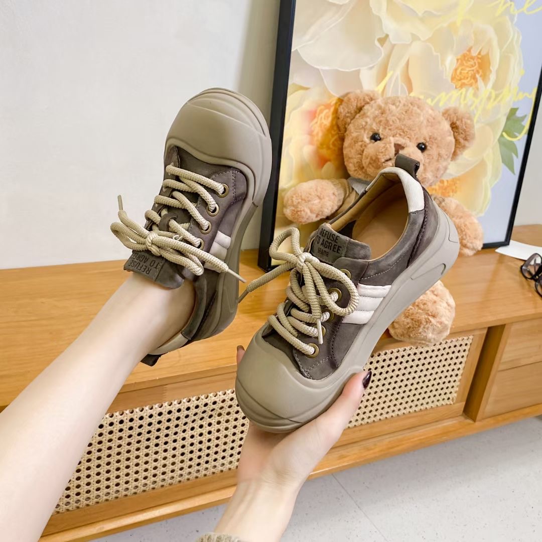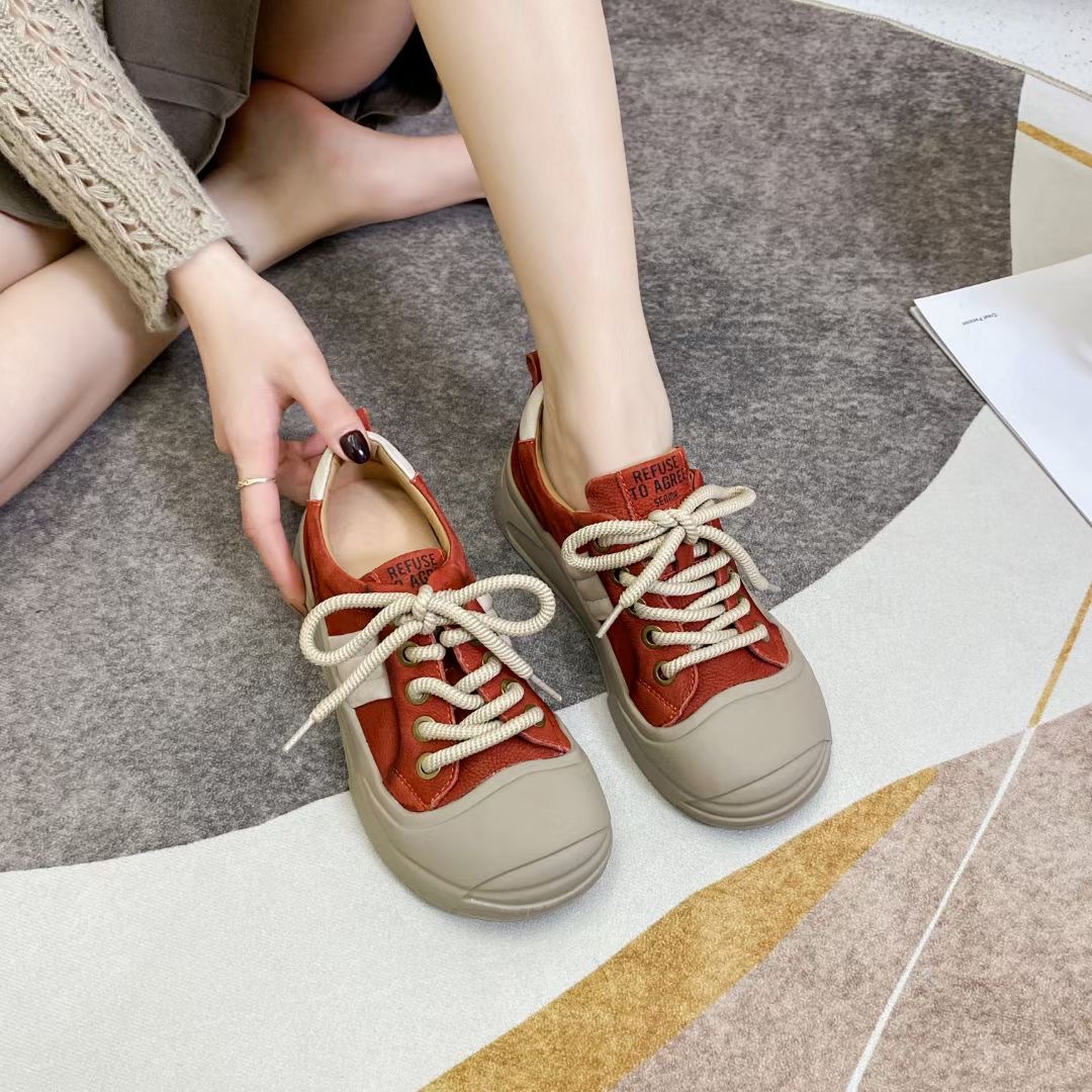 酷步奇2024年四季运动头层牛皮拼色休闲女板鞋