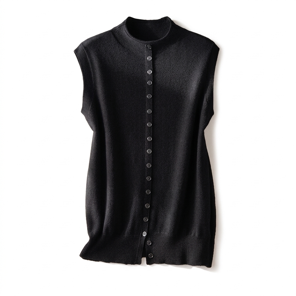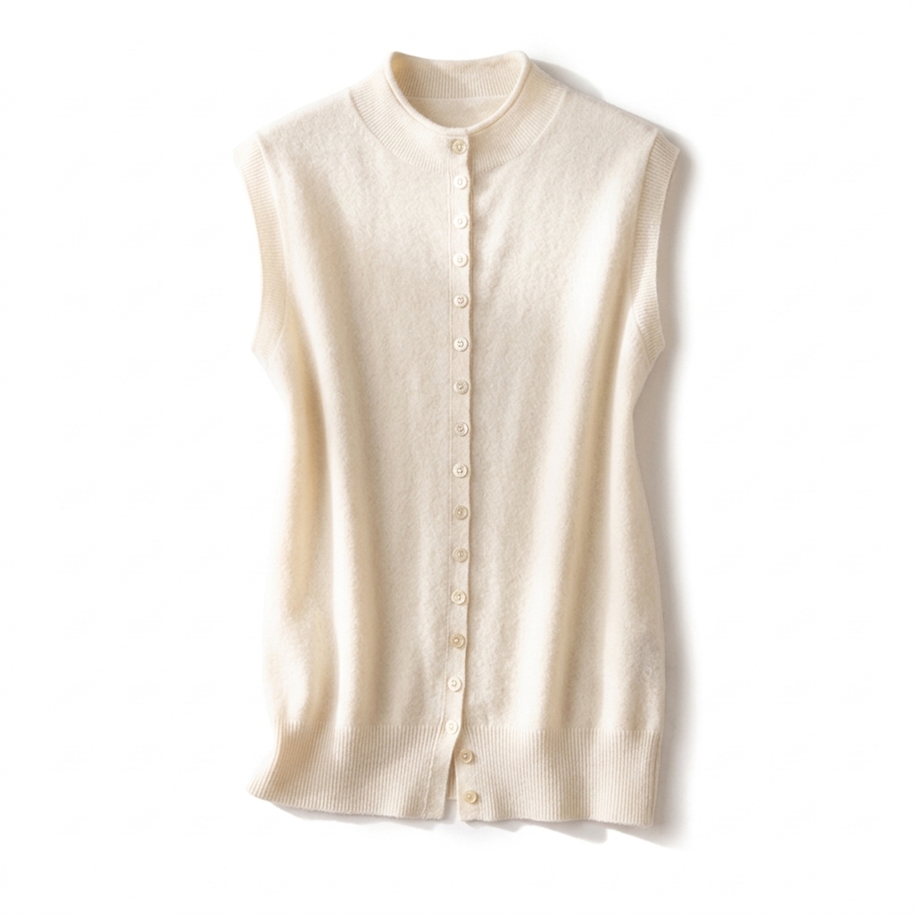 清冷风骨~半高领卷边无袖6A级白厂丝 羊毛背心单排扣马甲YM260588