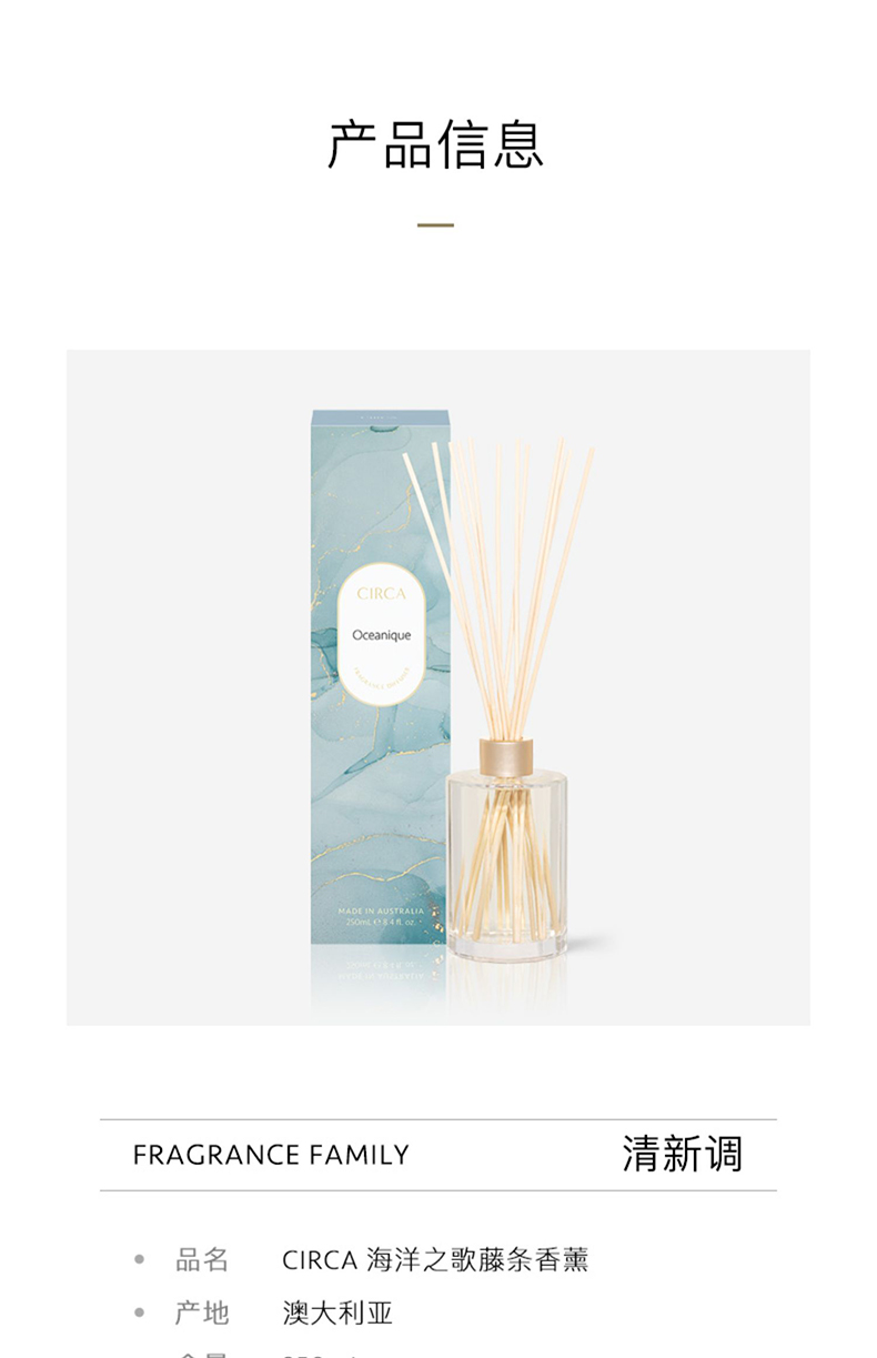 Circa海洋之歌250ml藤条香薰澳大利亚无火香氛礼盒卧室居家香薰