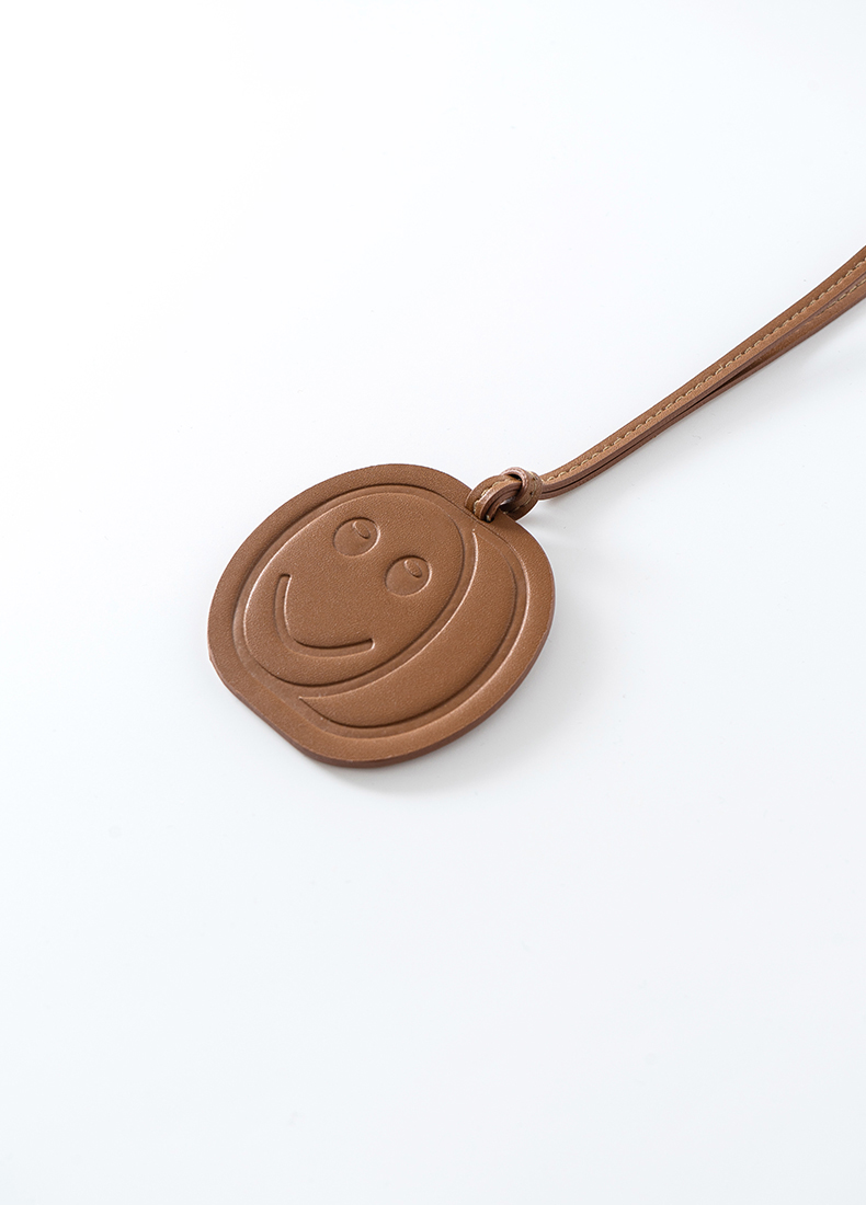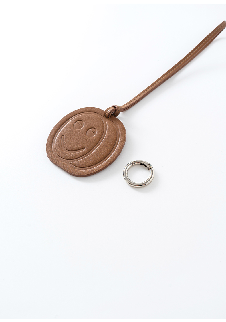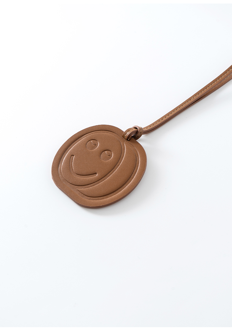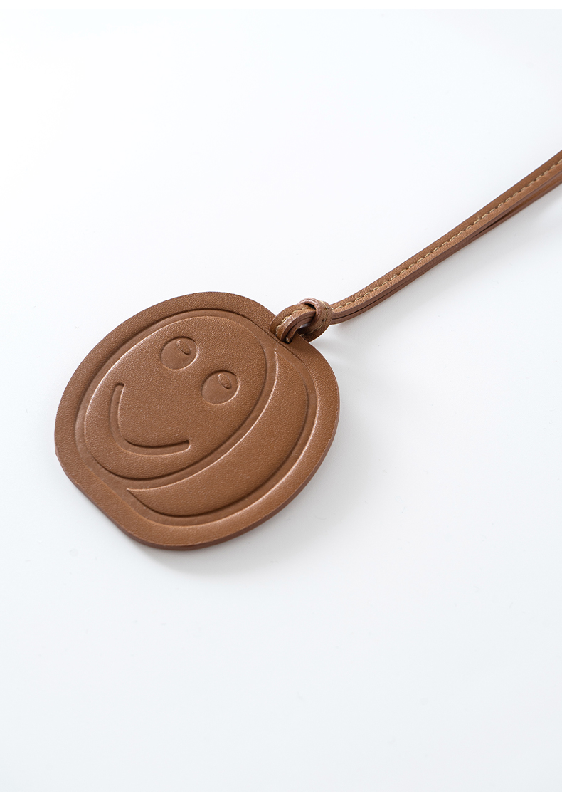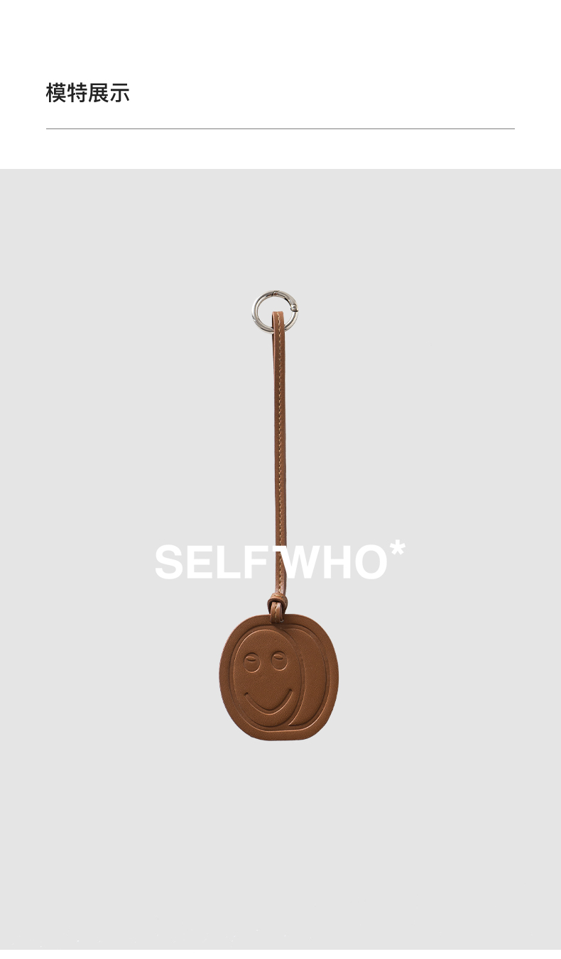 SELFWHO笑脸衣橱咖色挂件2025夏新款PU皮设计感衣服包包配饰挂饰