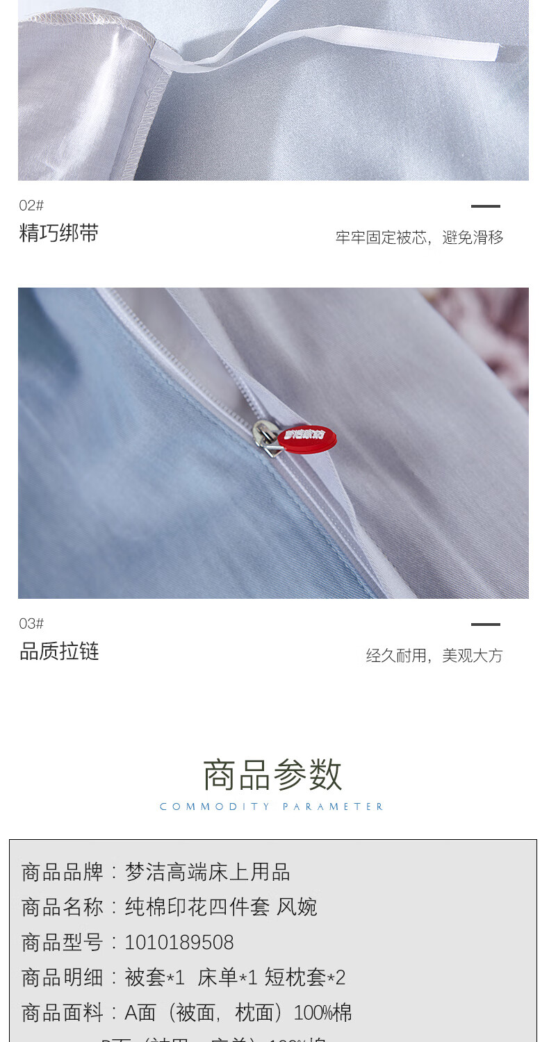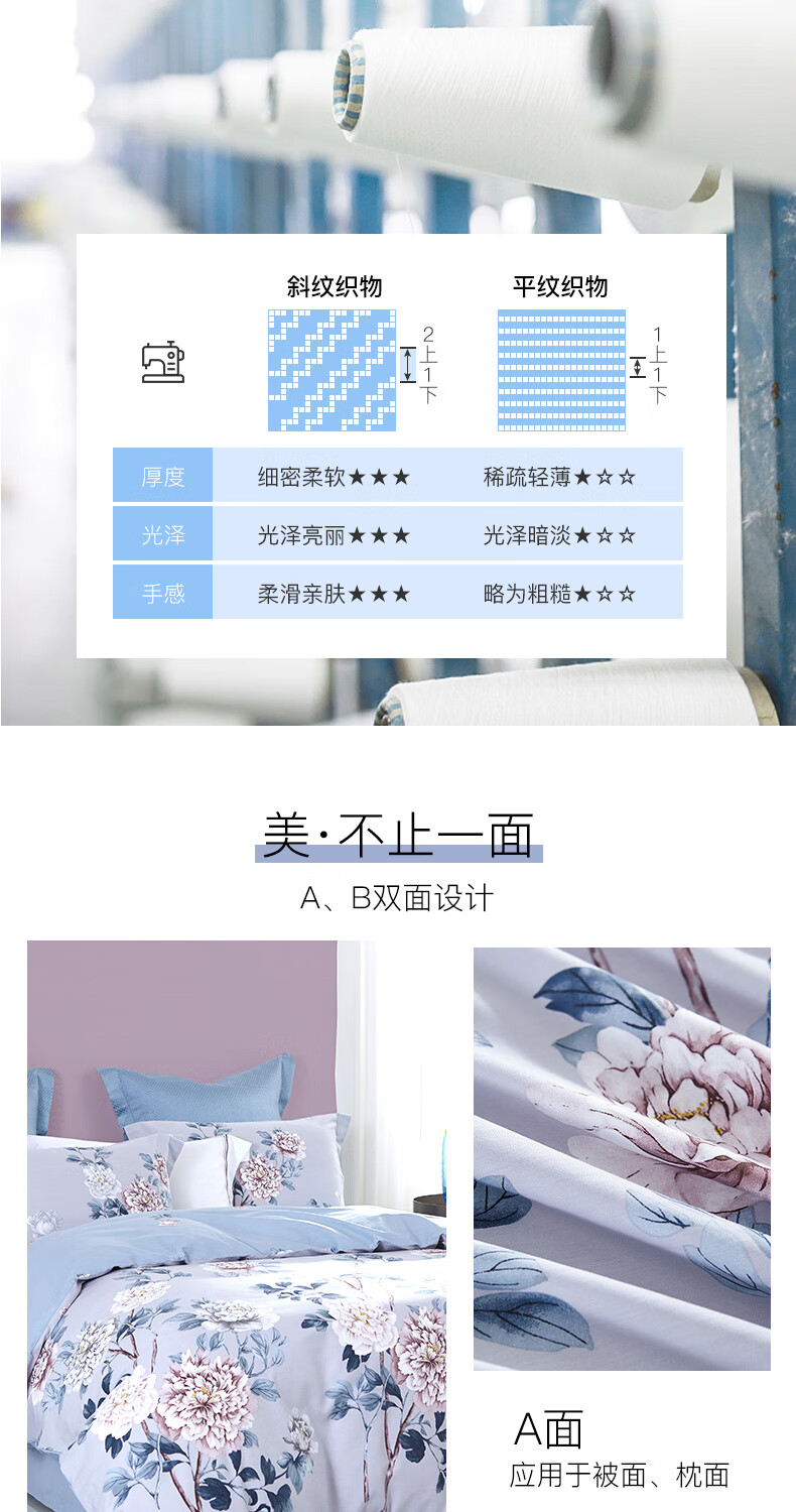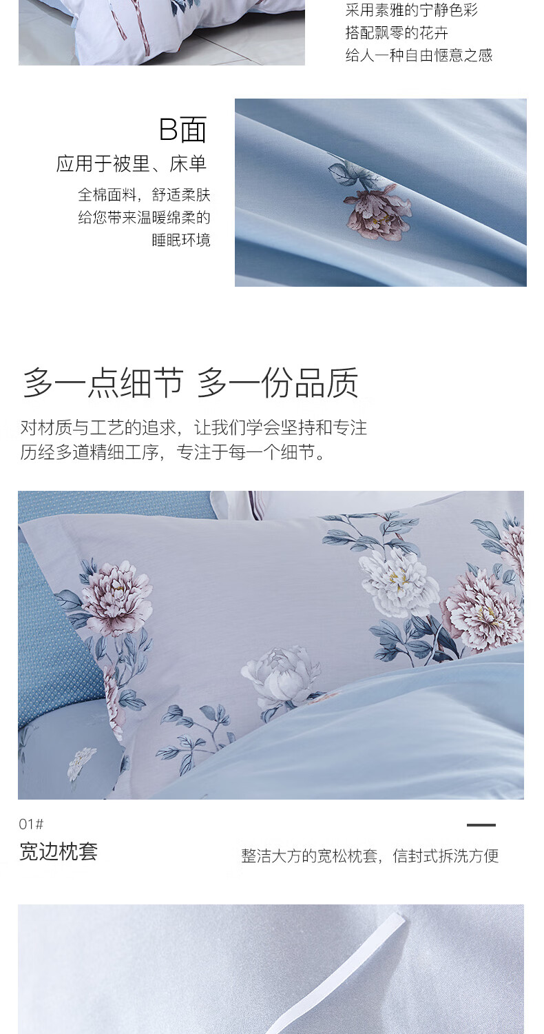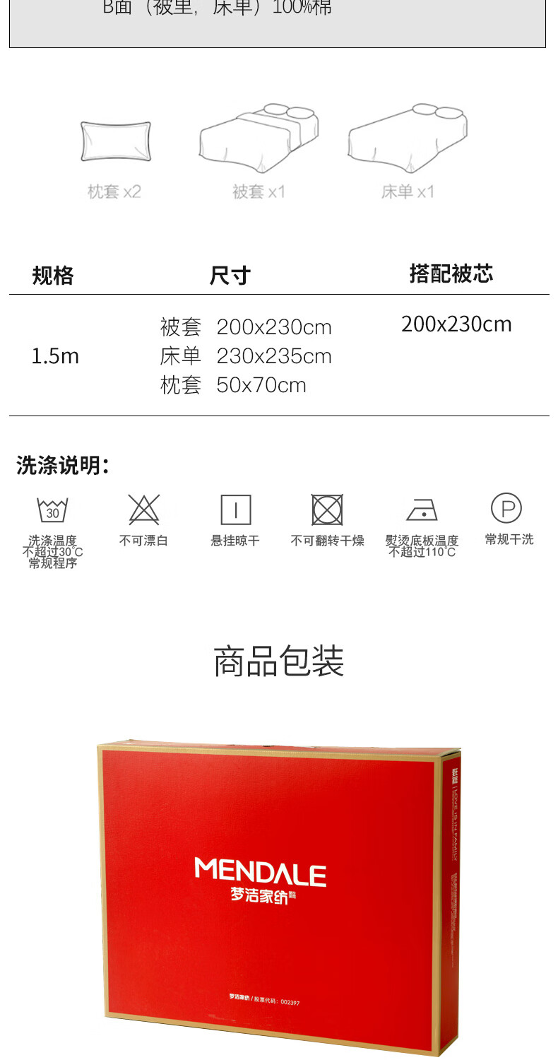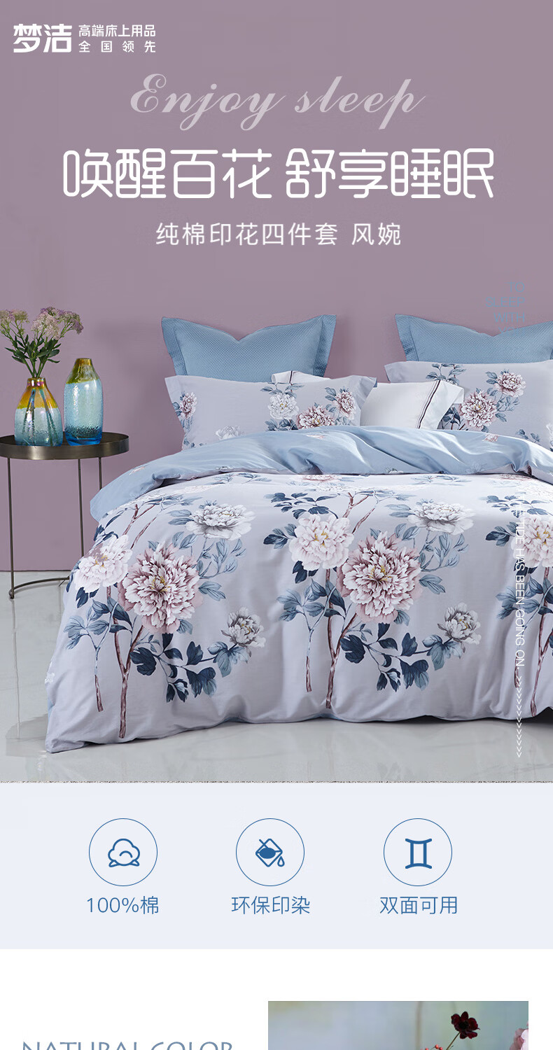 梦洁家纺 四件套 纺纯棉印花四件套:风婉
