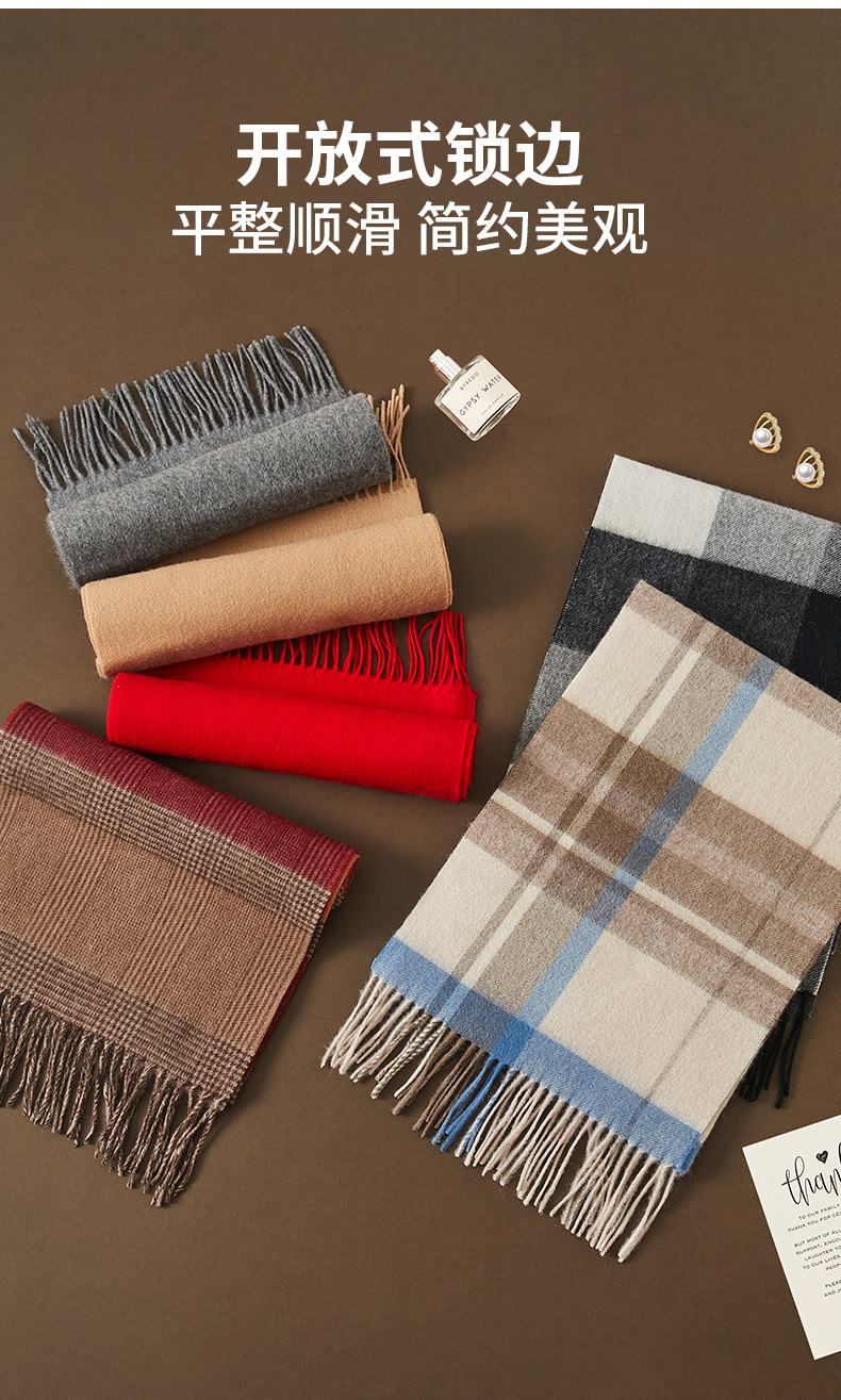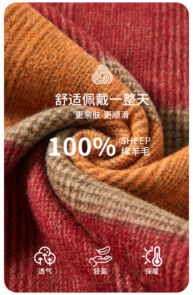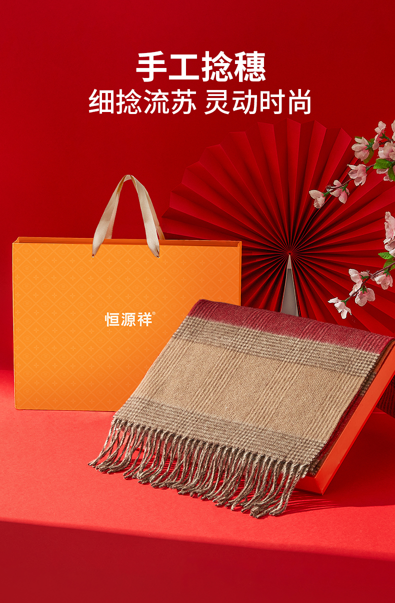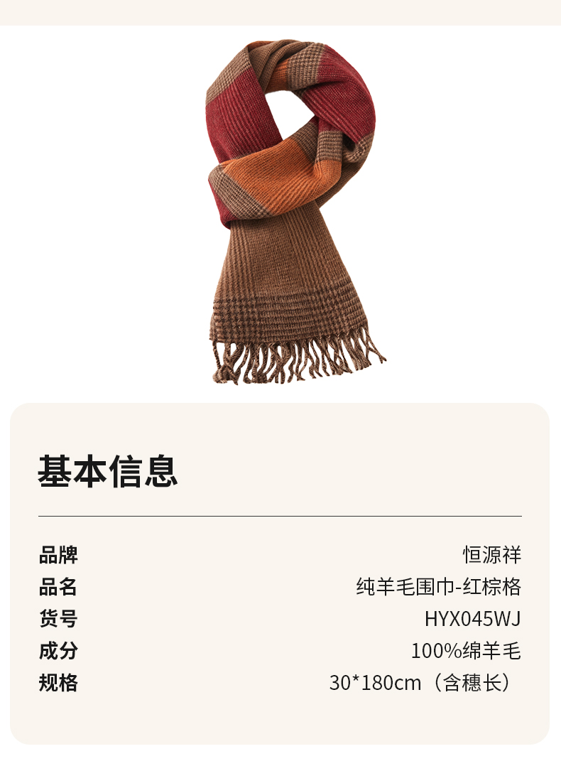 恒源祥 纯羊毛围巾-红棕格 HYX045WJ