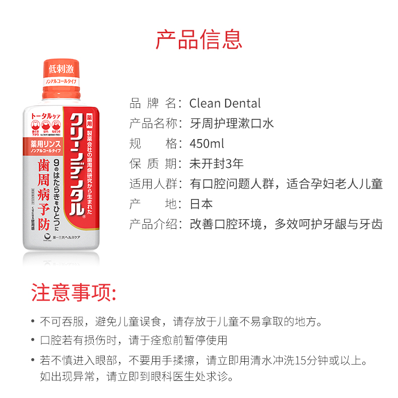 Clean Dental 第一三共 牙周防护漱口水 450ml 全效护理型