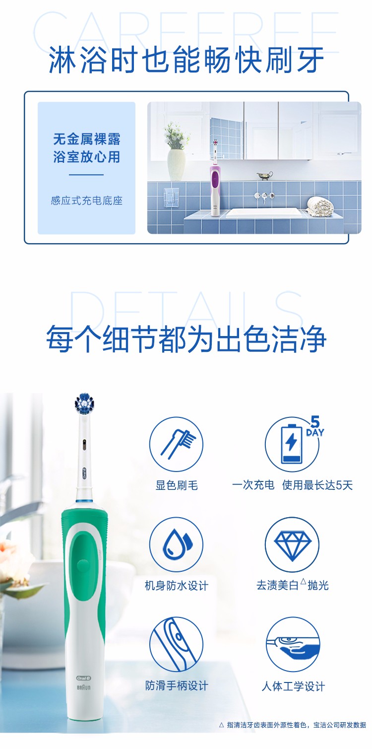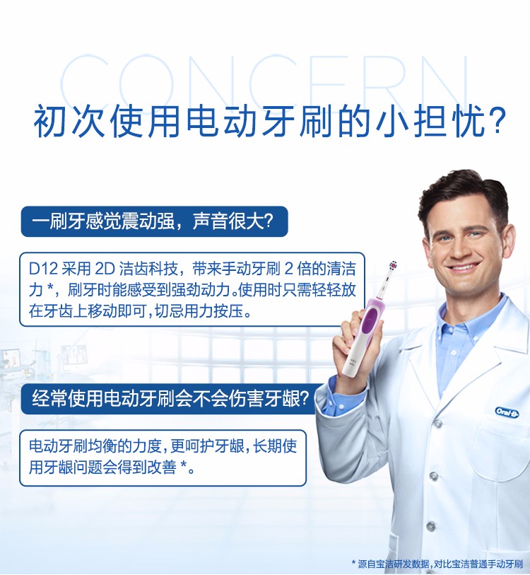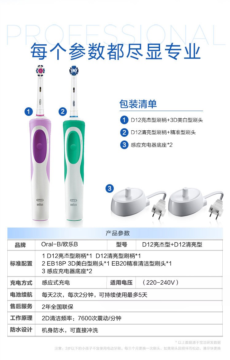 欧乐B(Oral-B) 充电式电动牙刷 D12薰衣草套装