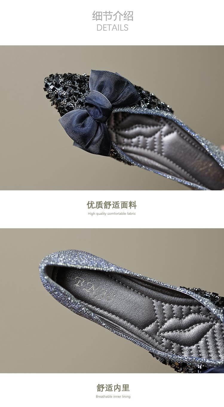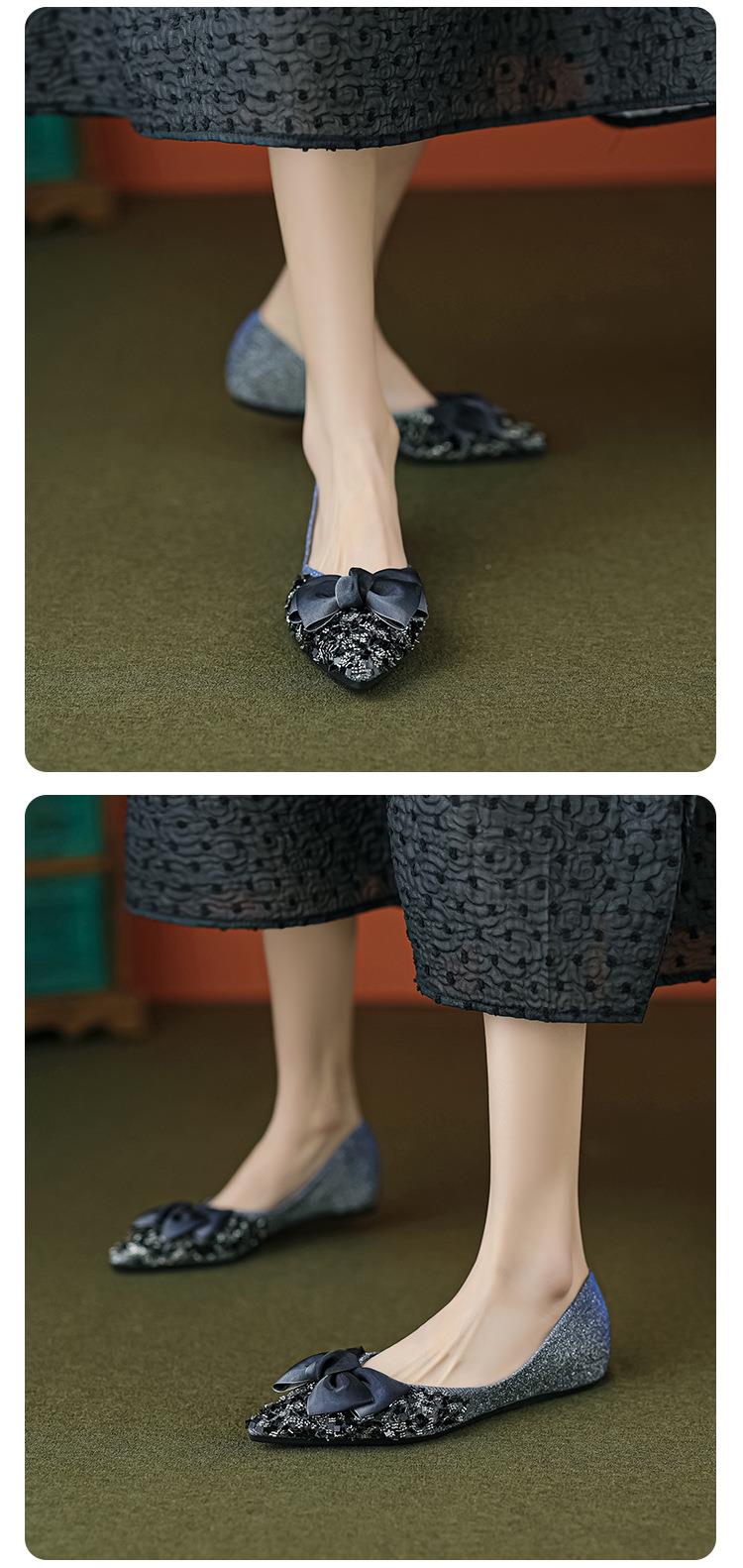 维薇女郎 2024春夏尖头平底单鞋女蝴蝶结新款一脚蹬钉珠瓢鞋女软底浅口大码女鞋