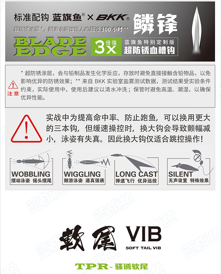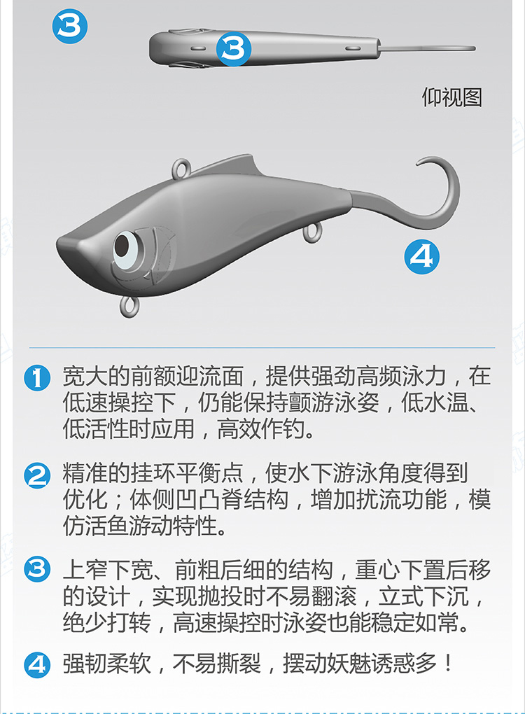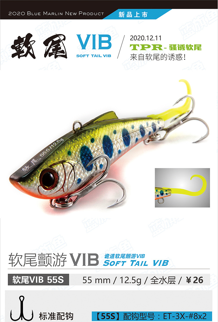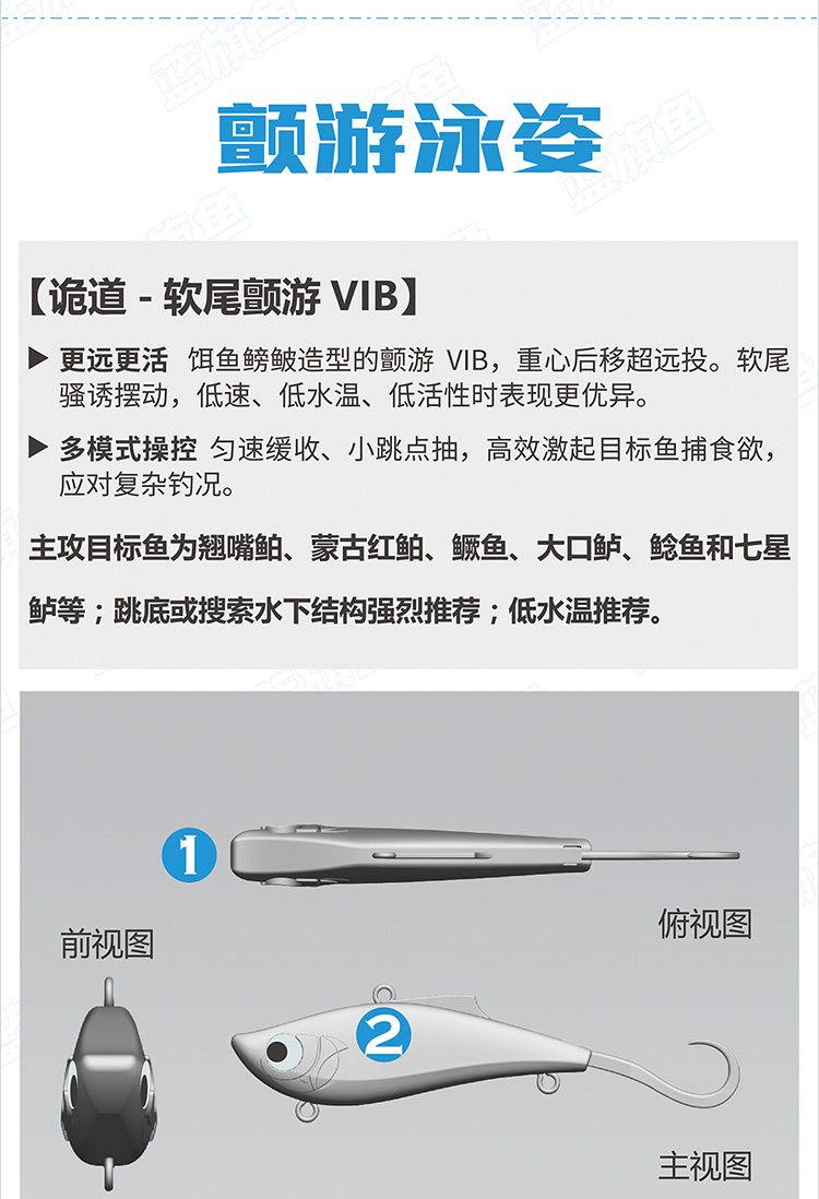 蓝旗鱼新品诡道软尾VIB 5.2CM 12.5克远投沉水全泳层翘嘴路亚饵假