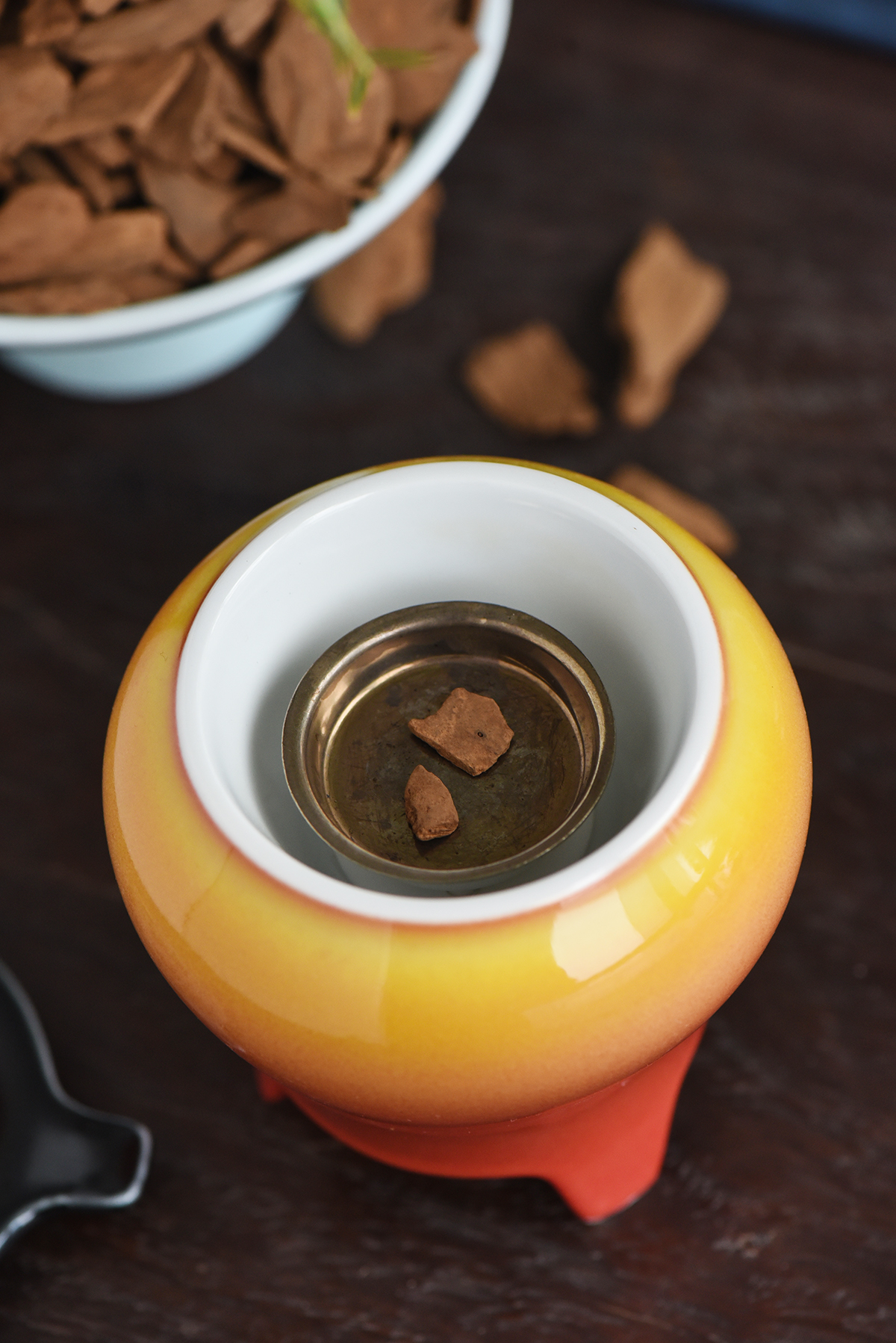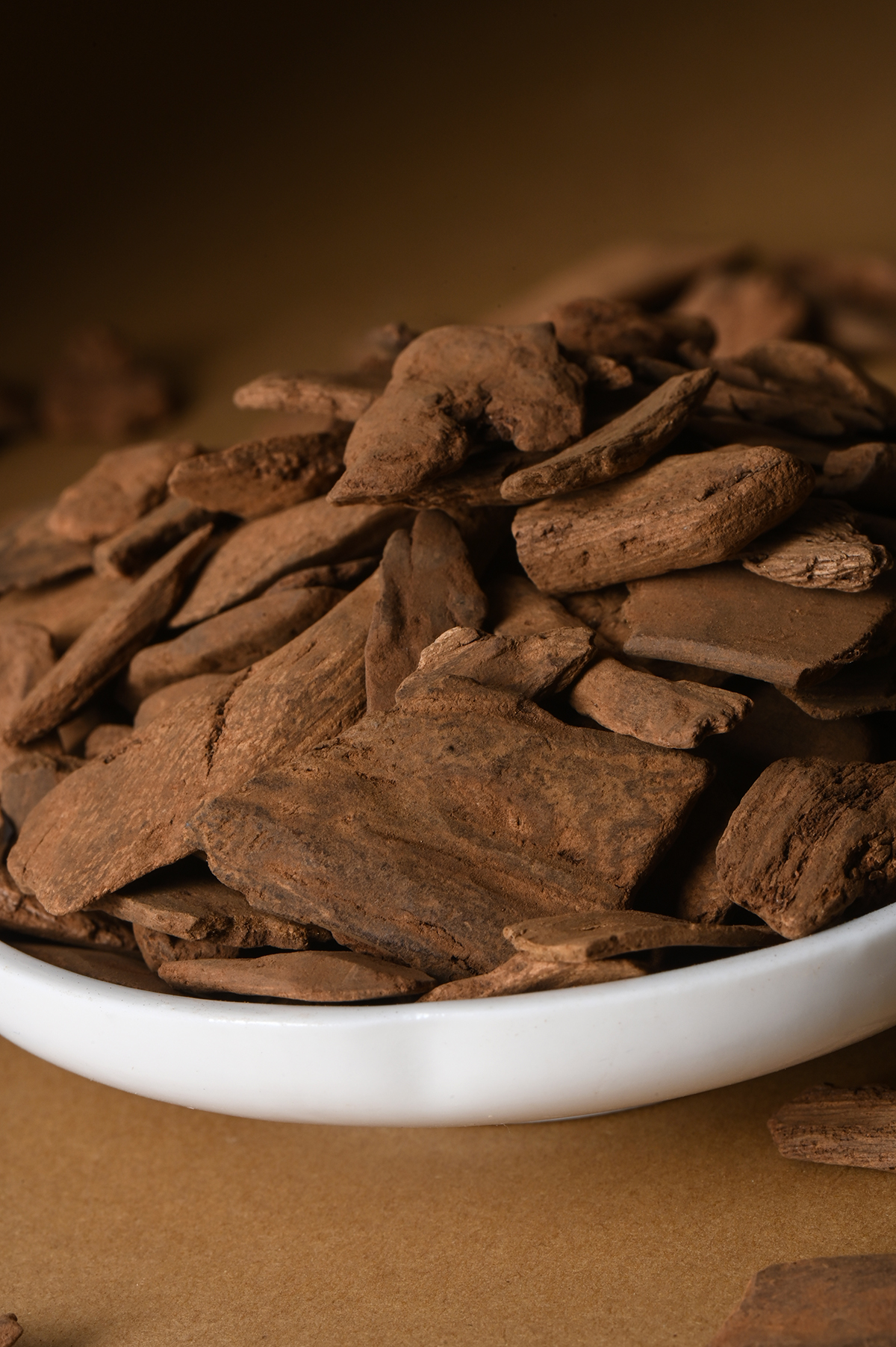 木质纤维被油脂彻底渗透,质地坚硬,香气醇厚似陈年佳酿。土沉在密闭缺氧环境中缓慢熟成,香气分子更饱满醇厚。