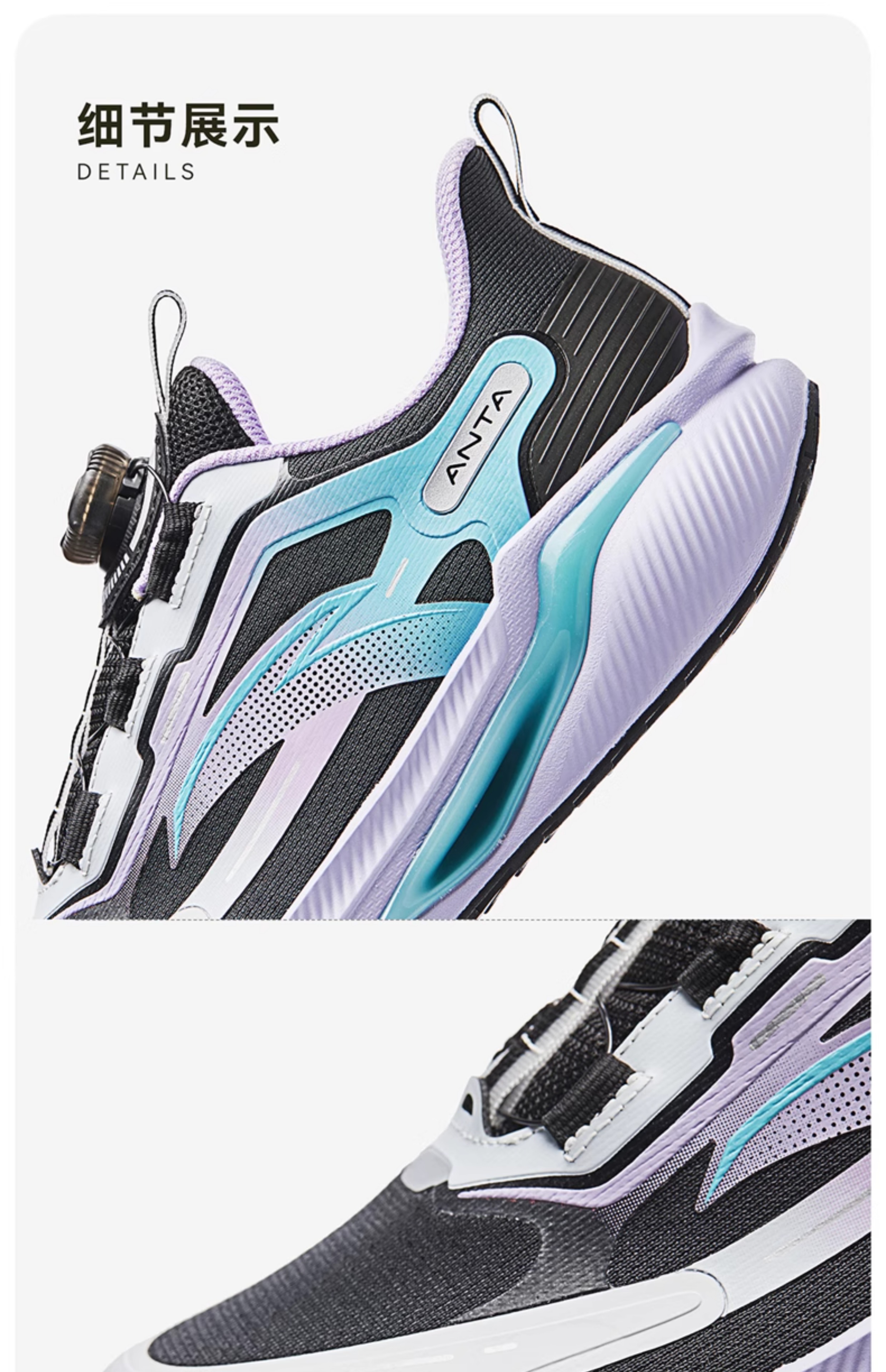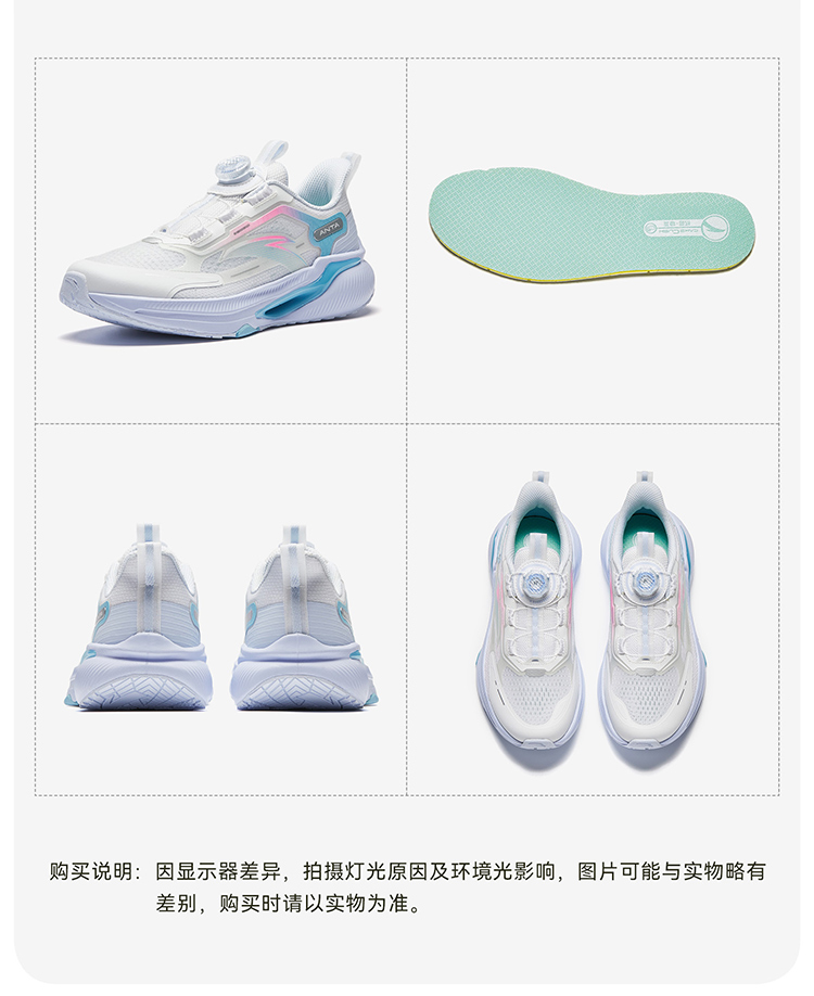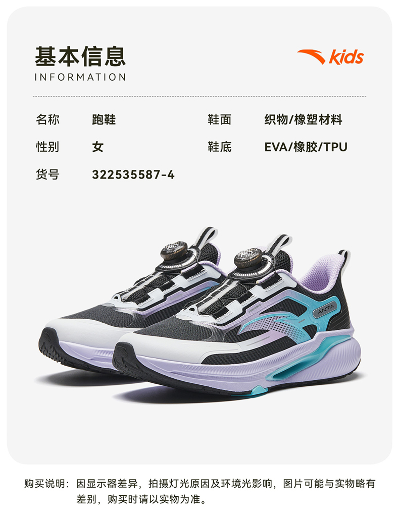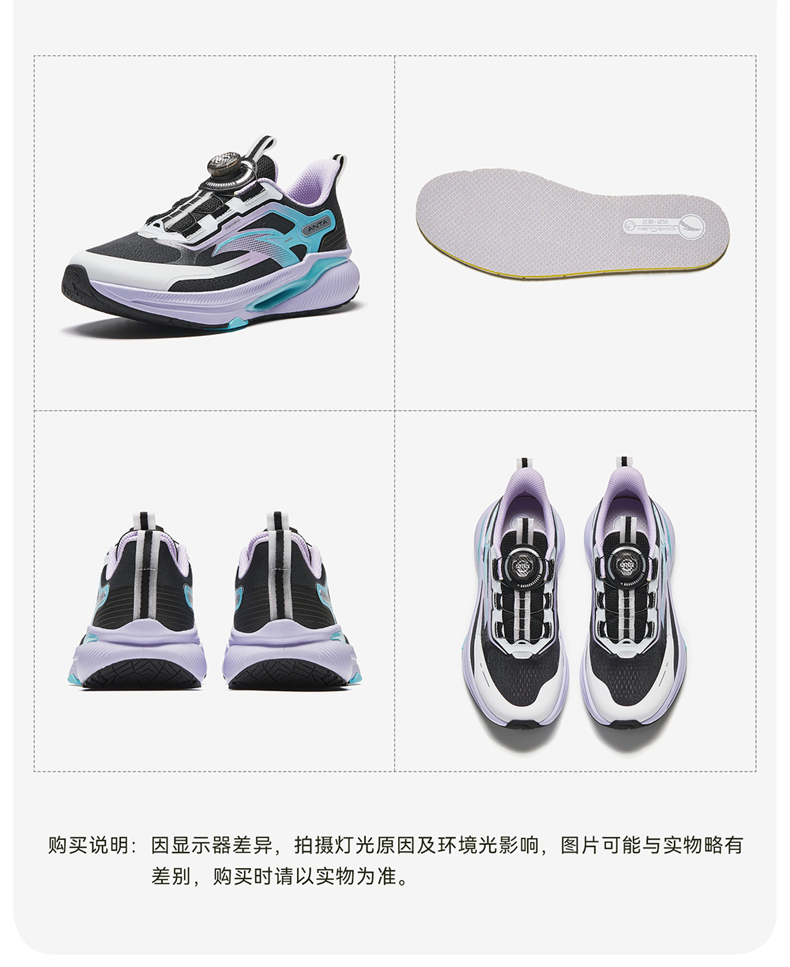 安踏儿童女大童跑鞋2025秋季新款舒适防滑耐磨中大童旋钮运动鞋子322535587