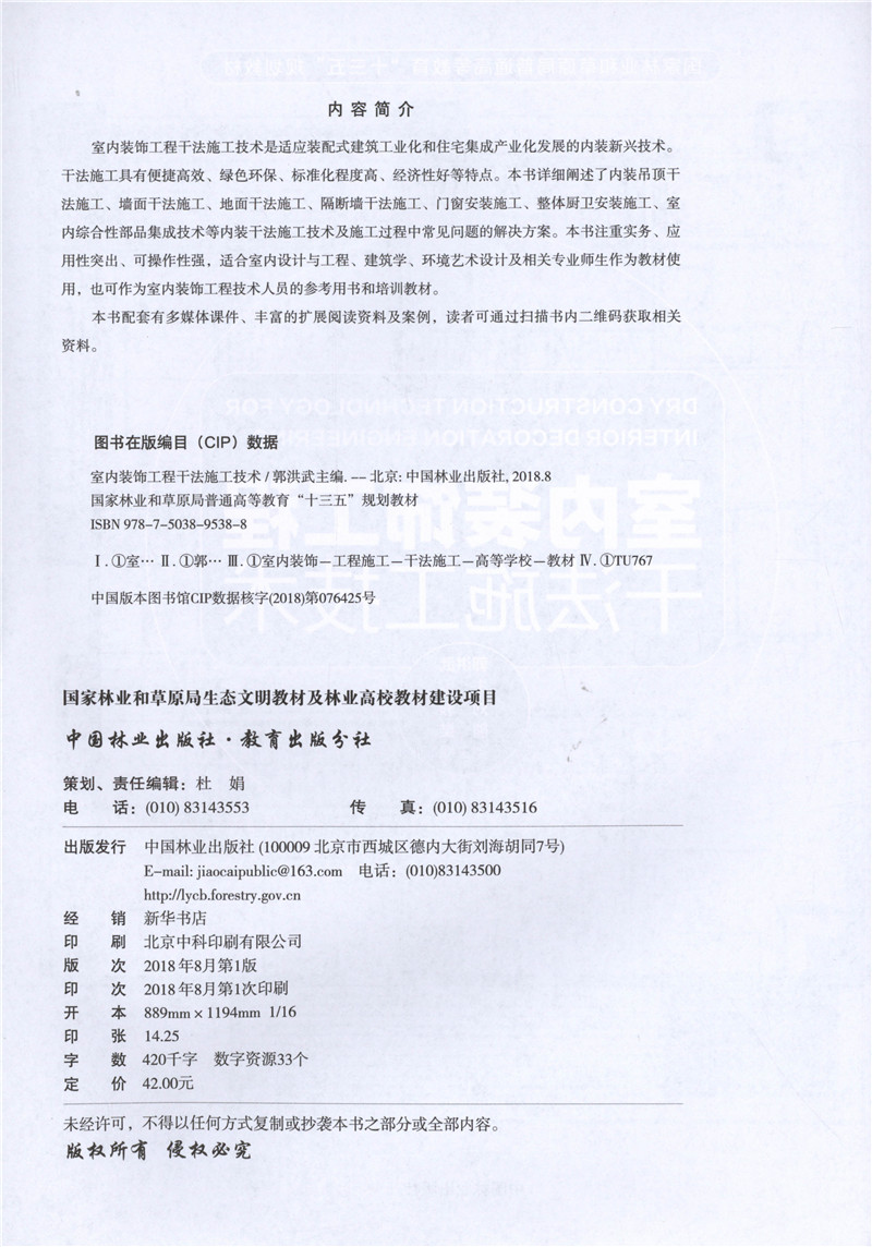 室内装饰工程干法施工技术 9538 吊顶 墙面 地面 隔断墙 门窗 整体厨卫 室内综合性部品集成技术 解决方案参考书 中国林业出版社