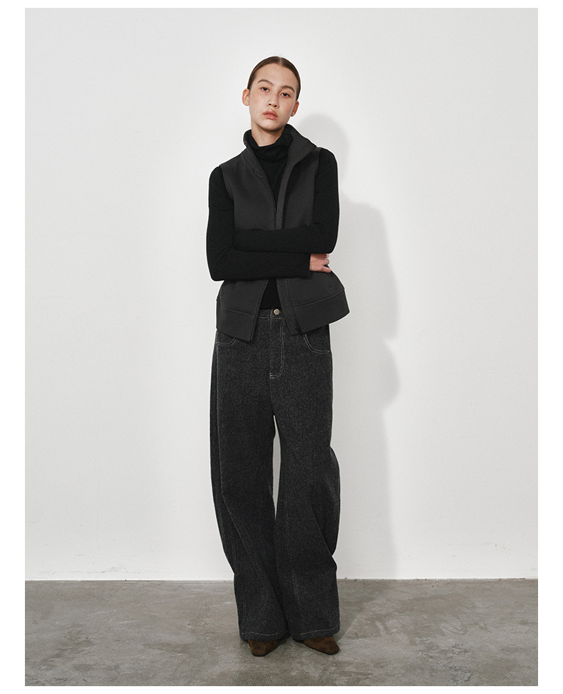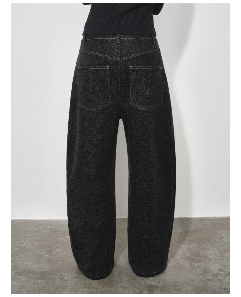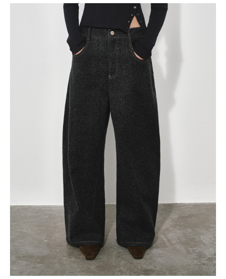 NUTH深灰色复古宽松阔腿弯刀牛仔裤女