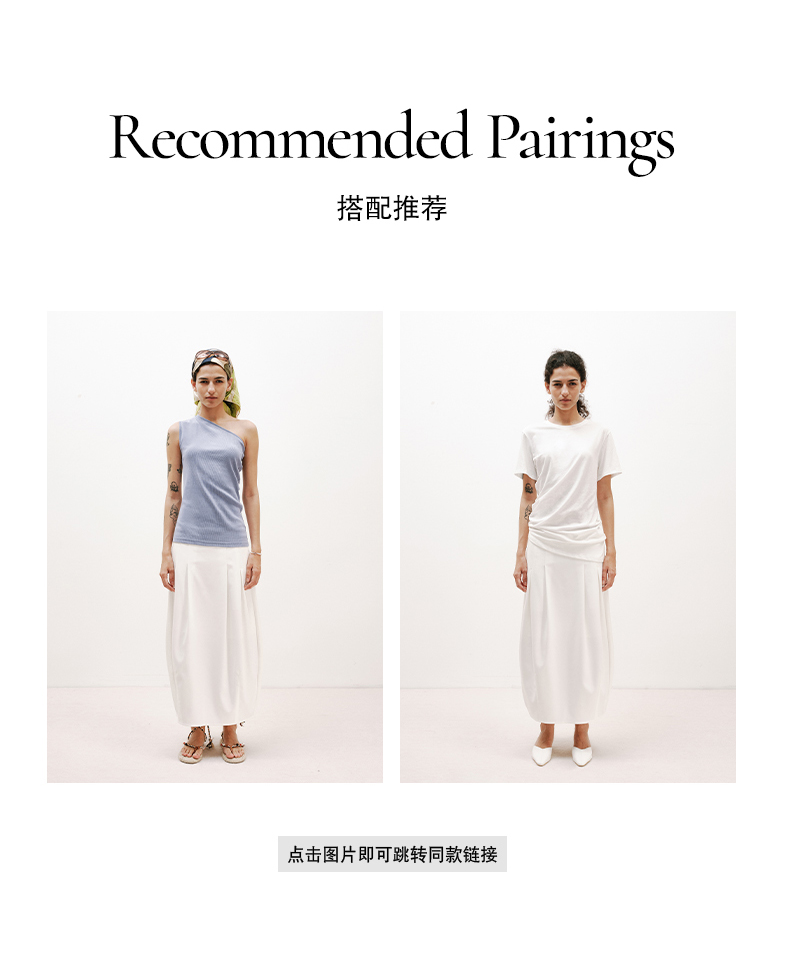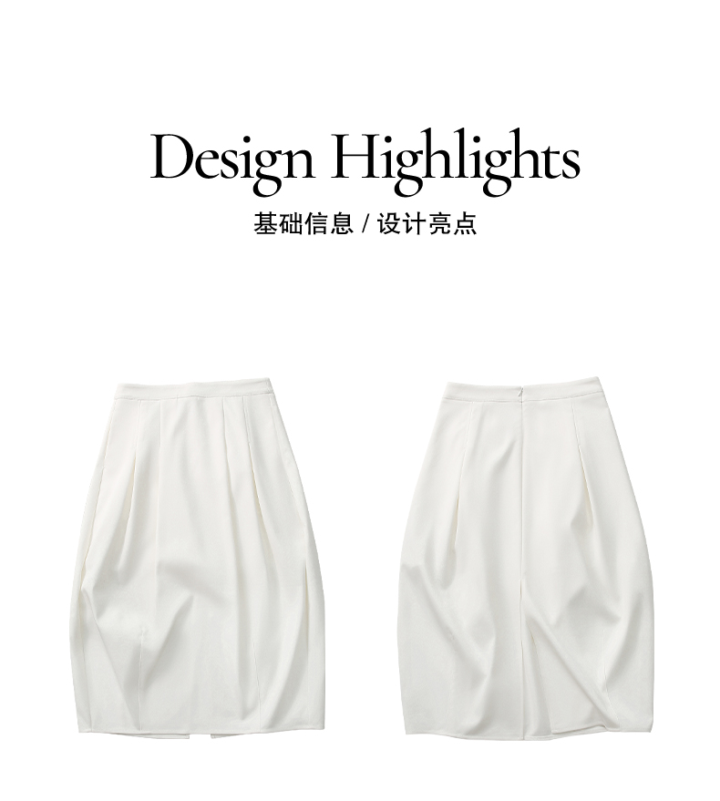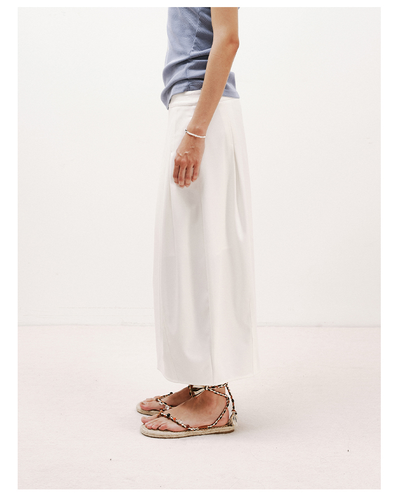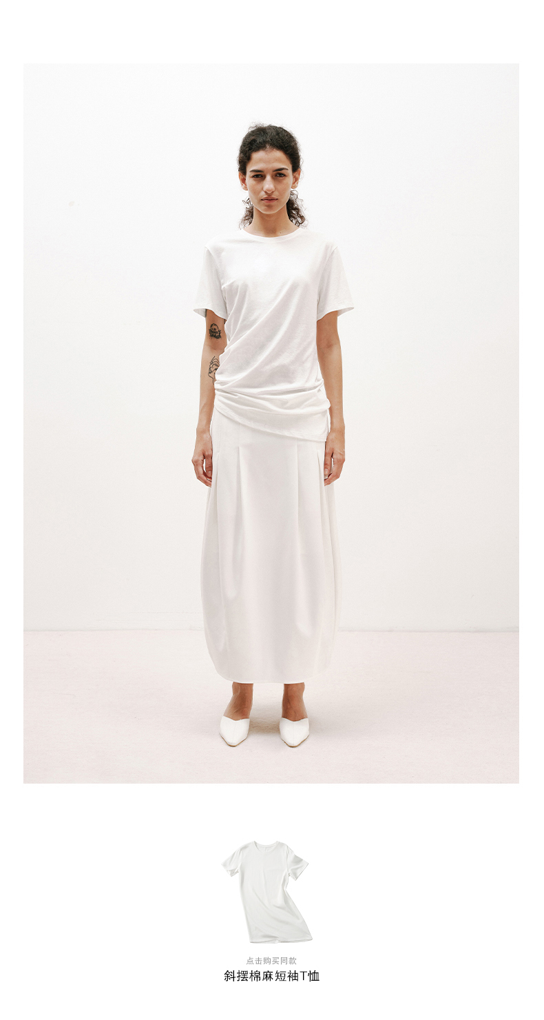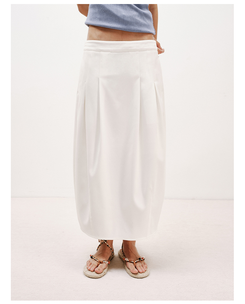 NUTH白色空气感花苞裙茧型显瘦中长款半身裙女