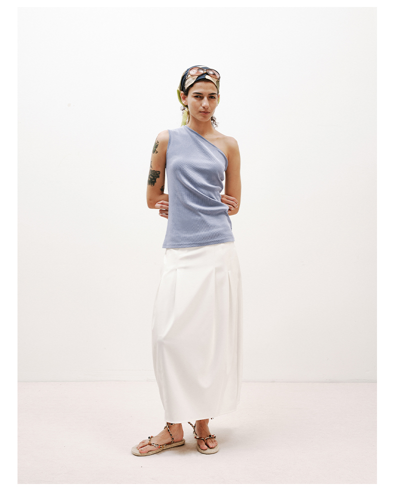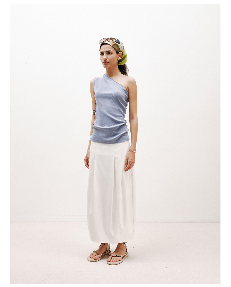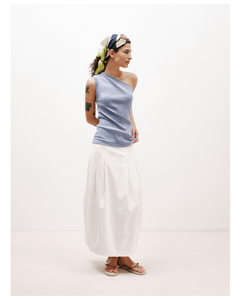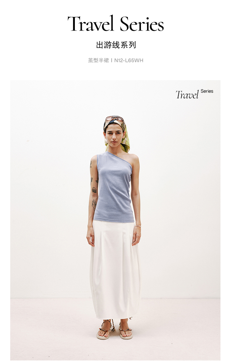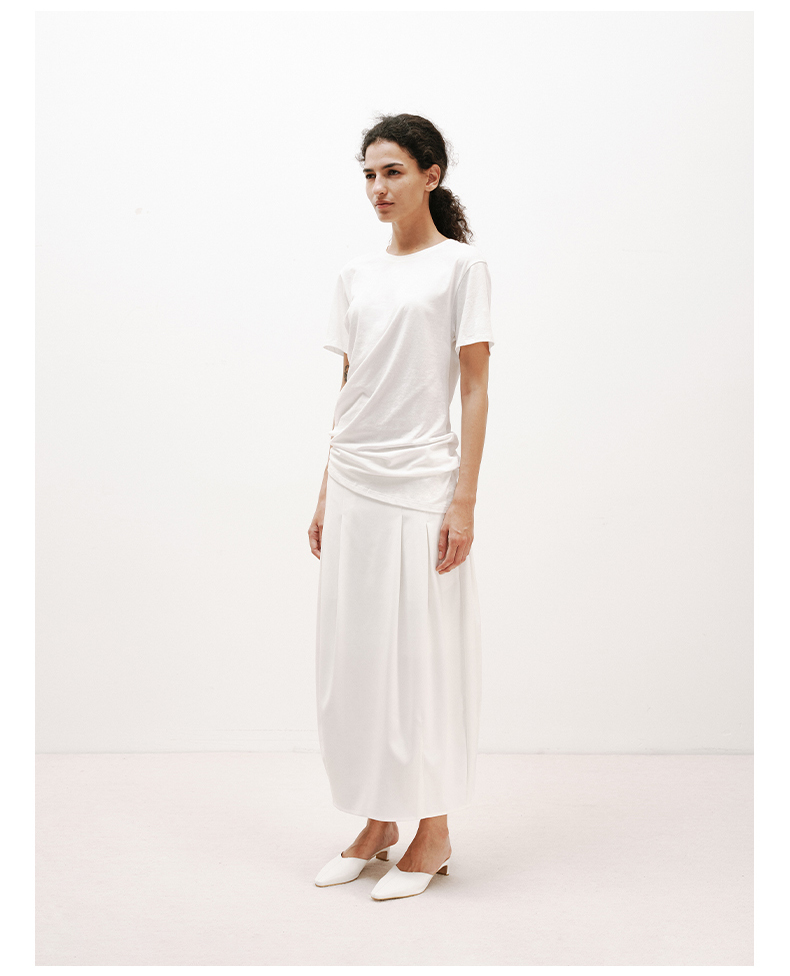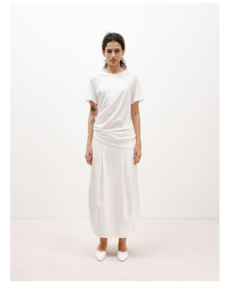 NUTH白色空气感花苞裙茧型显瘦中长款半身裙女