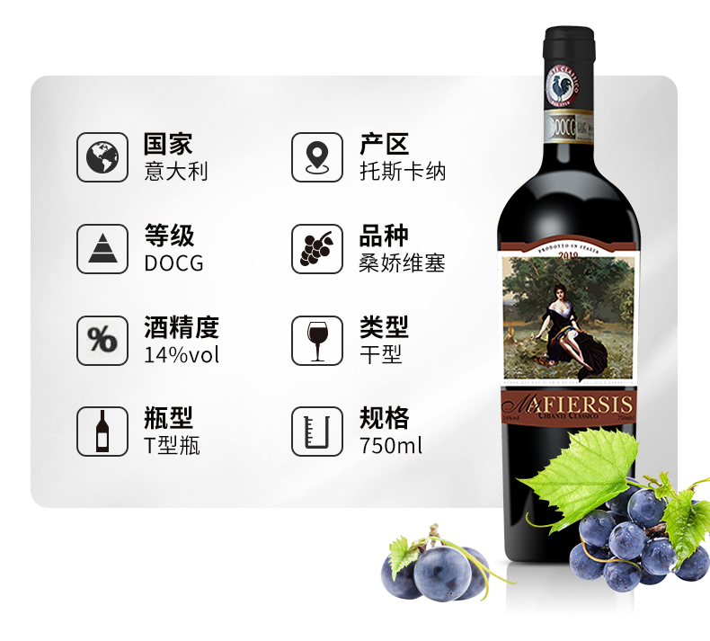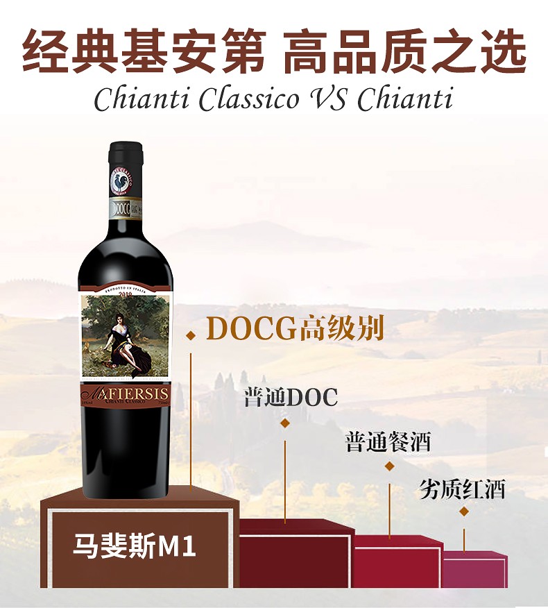【6瓶装】意大利进口马斐斯M1干红葡萄酒经典基安蒂14%vol 750ml/瓶