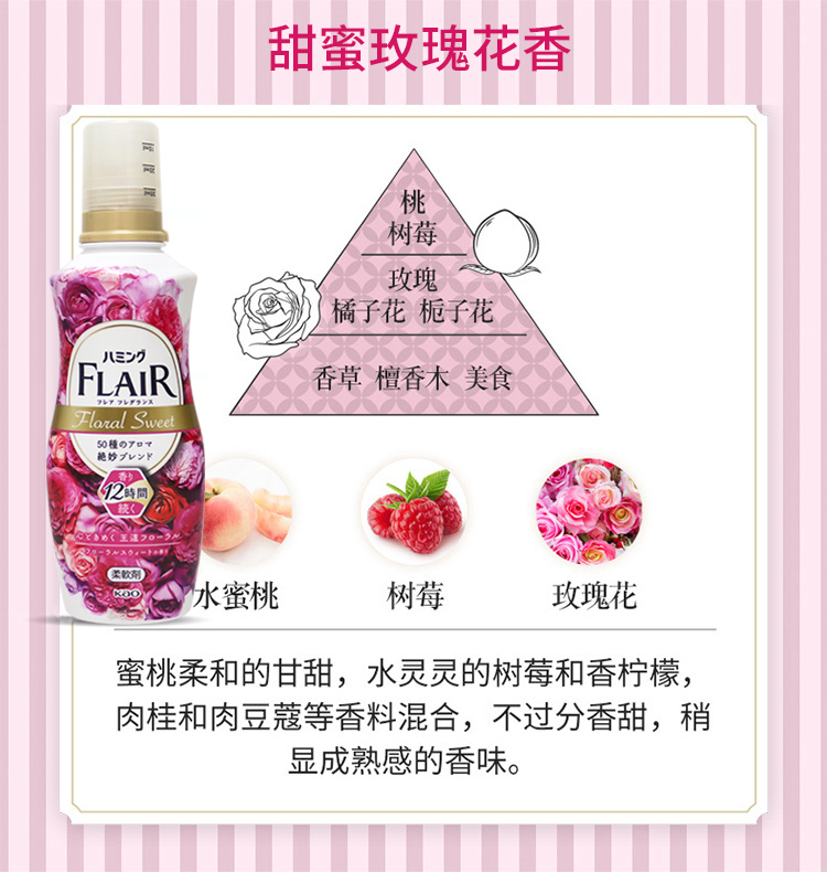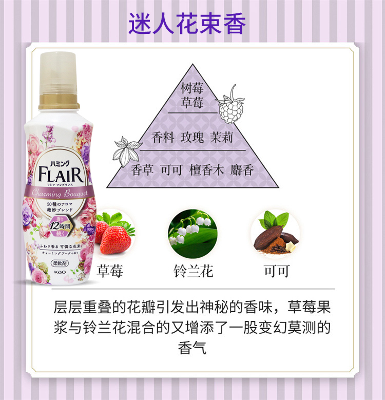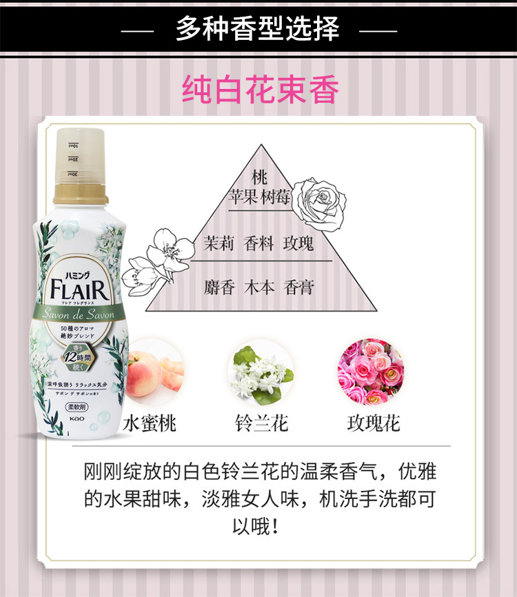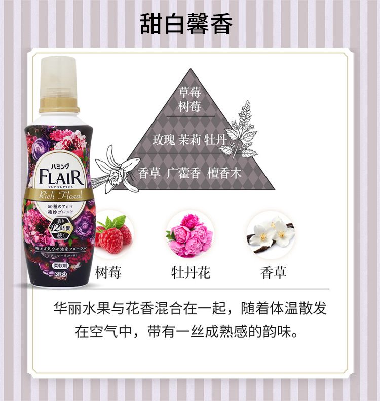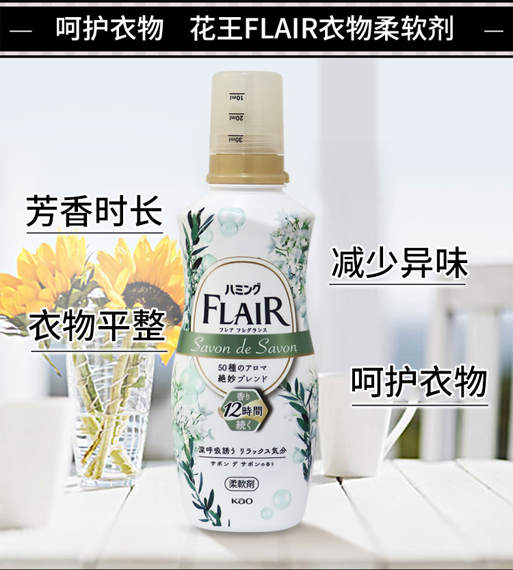 KAO花王 FLAIR衣物柔软剂护色防静电留香家庭装香氛护理剂洗衣液 520ml/瓶