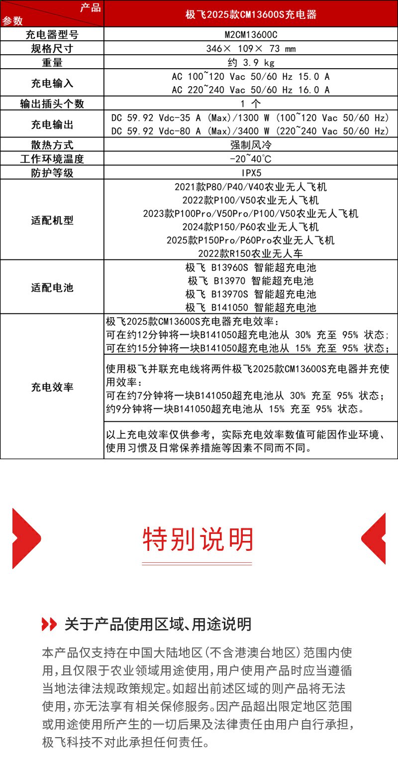 极飞 2025款 CM13600S 充电器 农业无人机配件 农机配件
