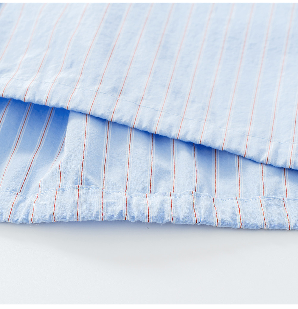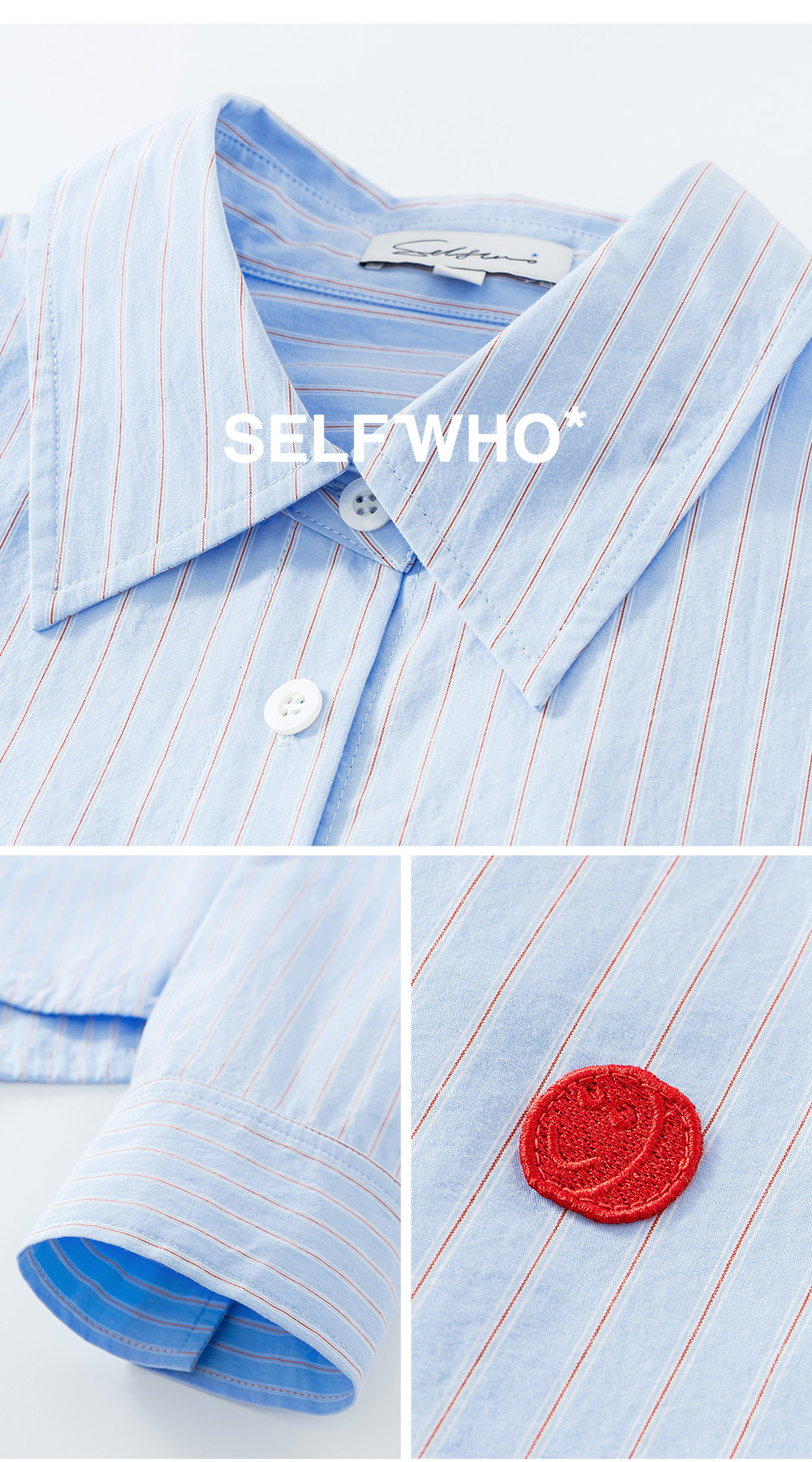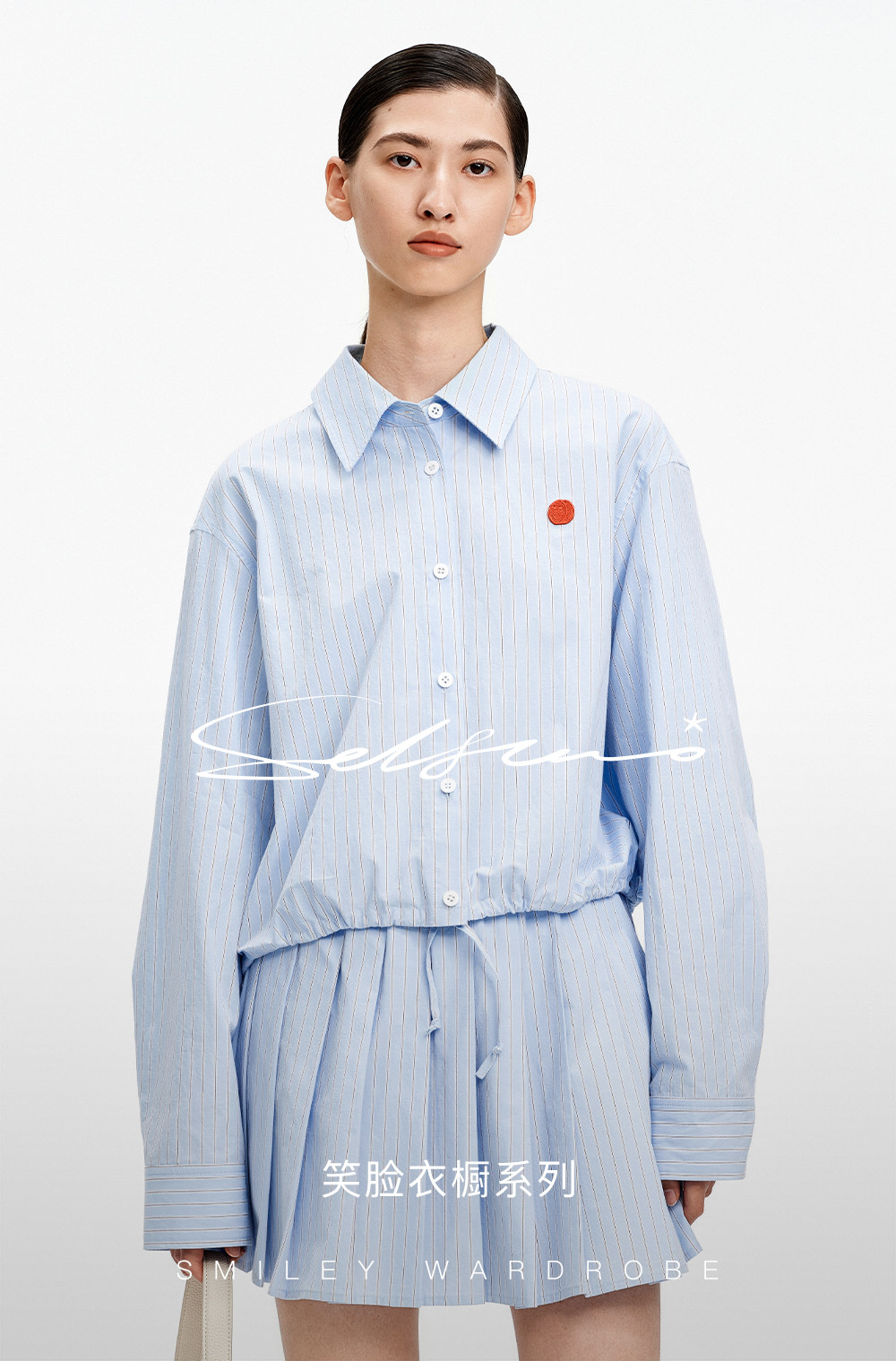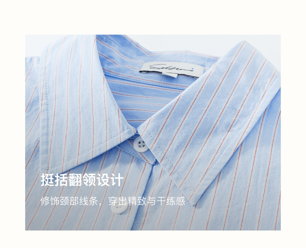 SELFWHO纯棉蓝色条纹衬衫女2026春新款翻领宽松简约通勤长袖上衣