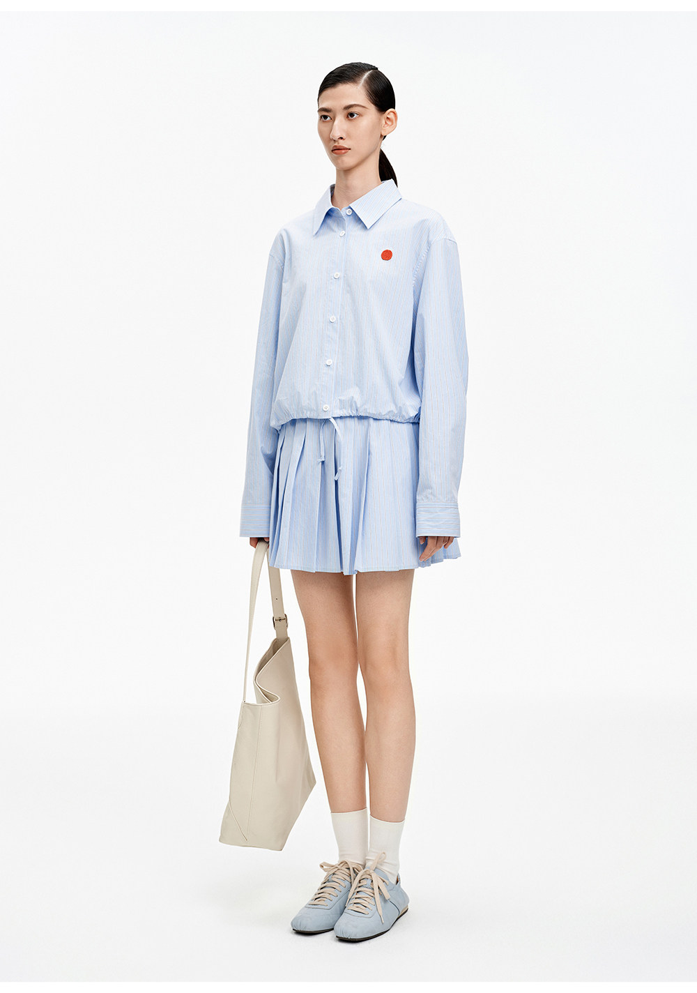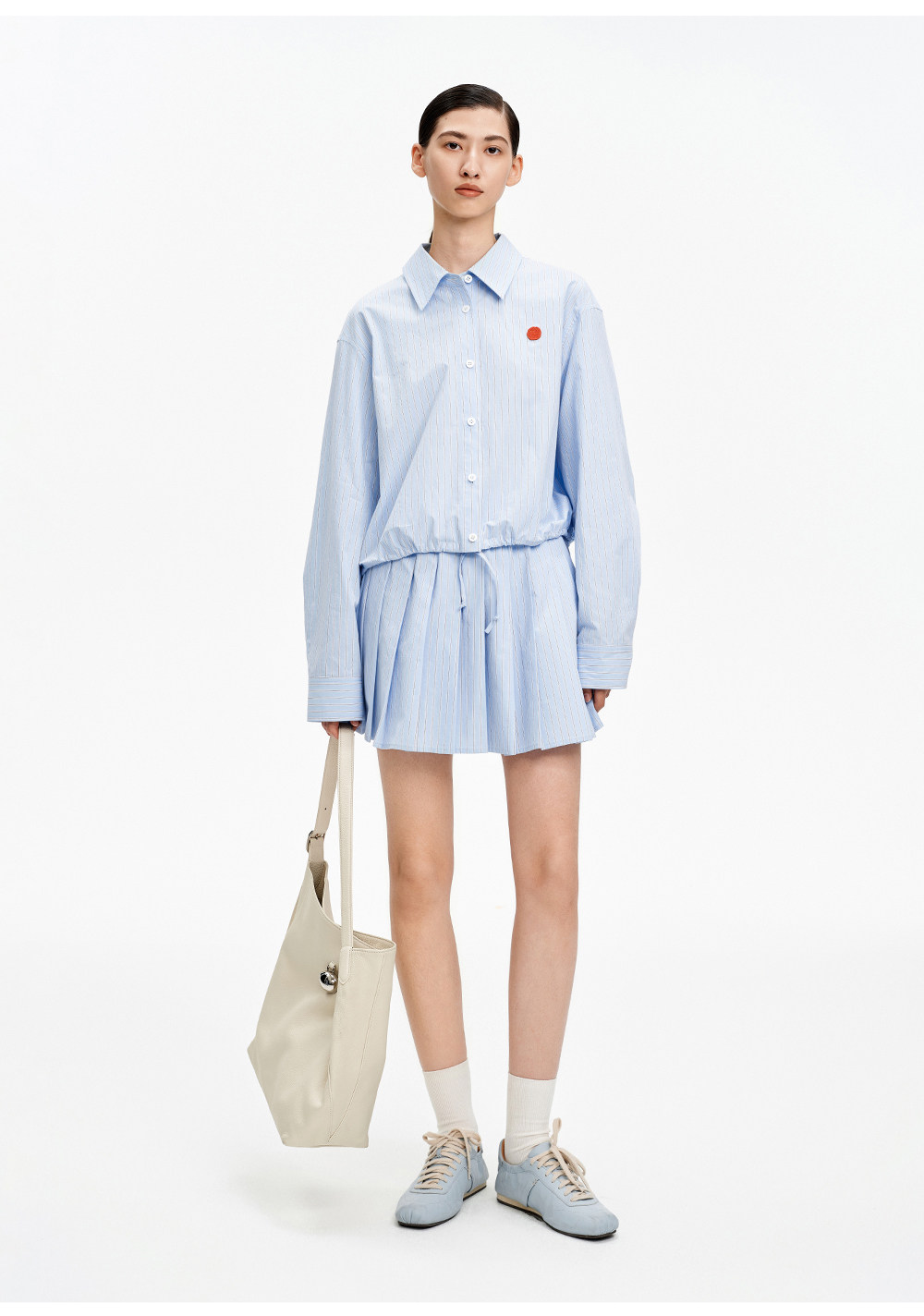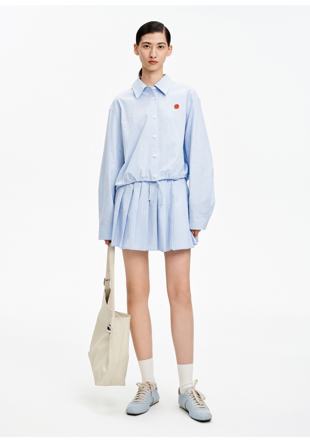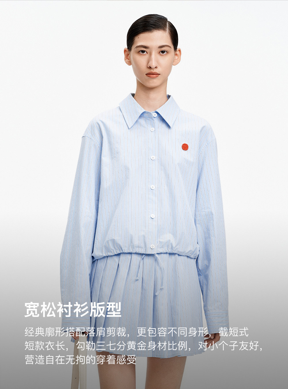 SELFWHO纯棉蓝色条纹衬衫女2026春新款翻领宽松简约通勤长袖上衣