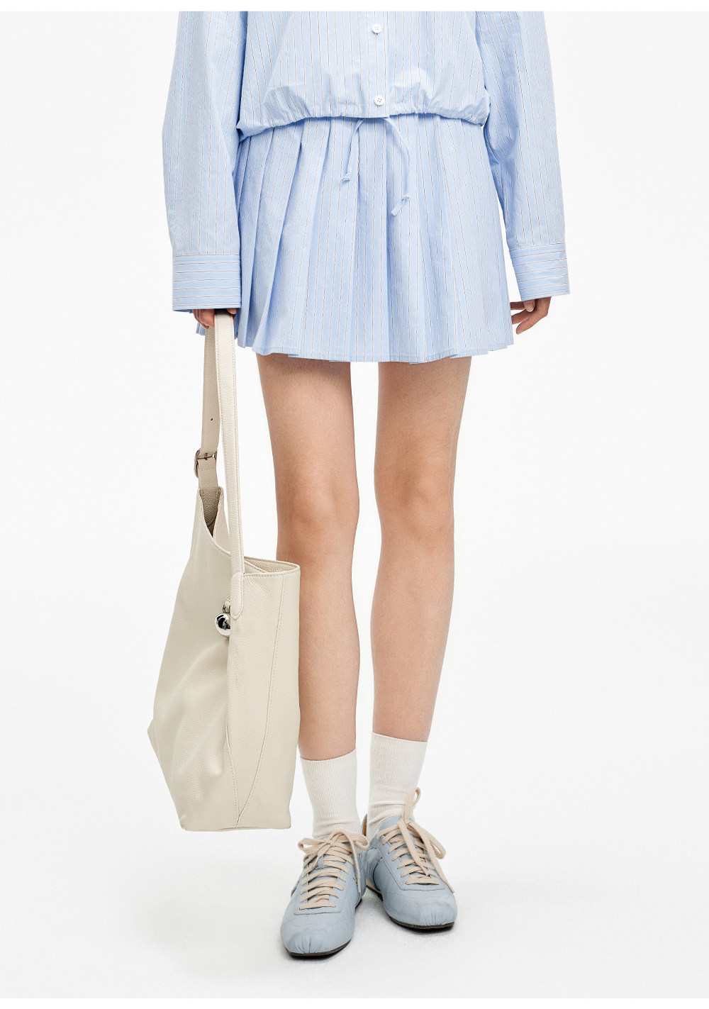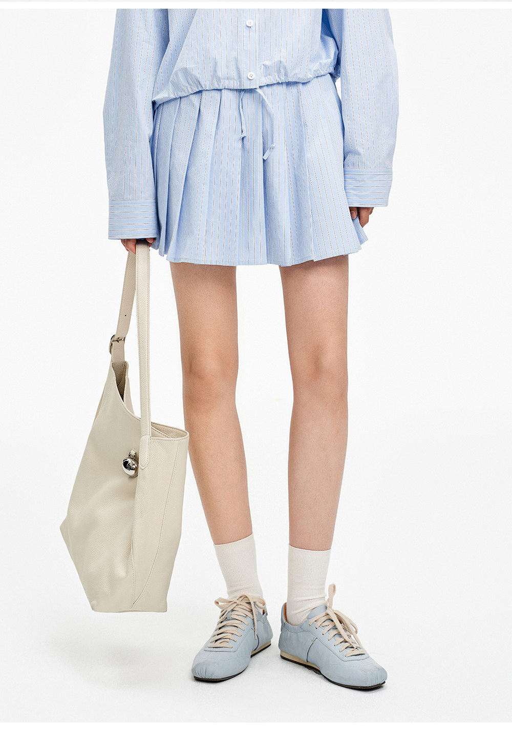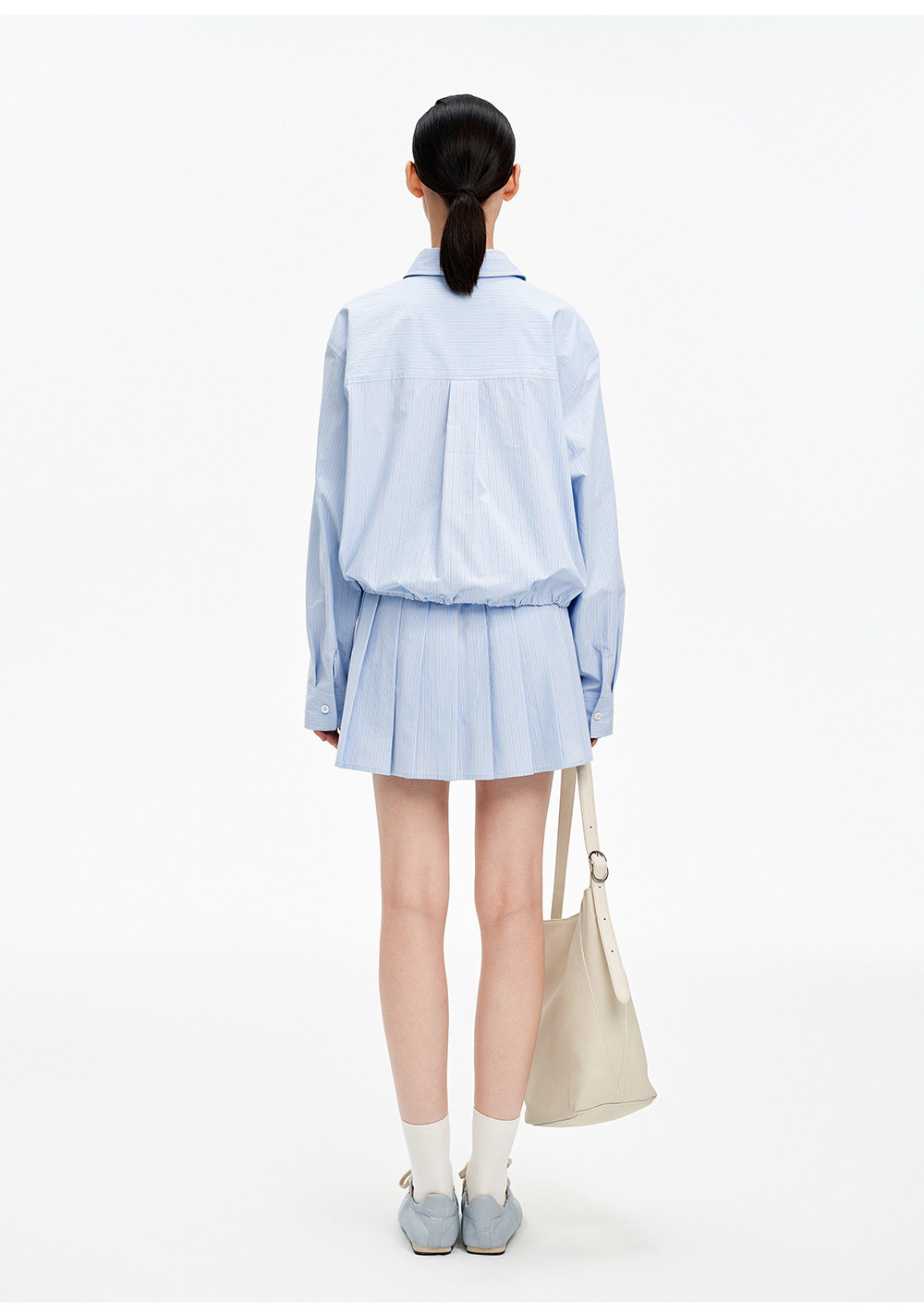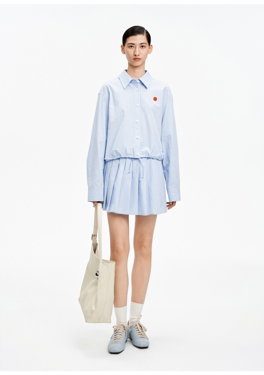 SELFWHO纯棉蓝色条纹衬衫女2026春新款翻领宽松简约通勤长袖上衣