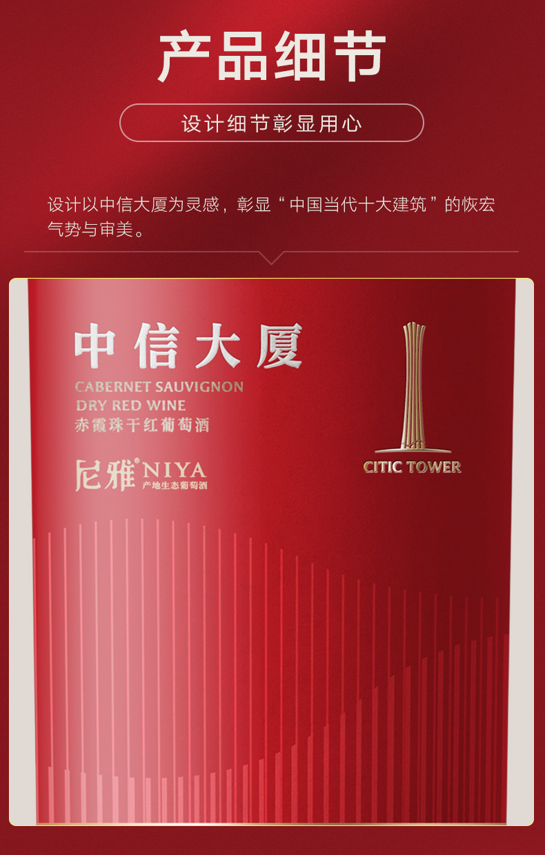 【联名】中信大厦·尼雅 赤霞珠干红葡萄酒 750ml 单支盒装 买1箱(6瓶)送尼雅0.5度脱醇 1箱(6瓶)