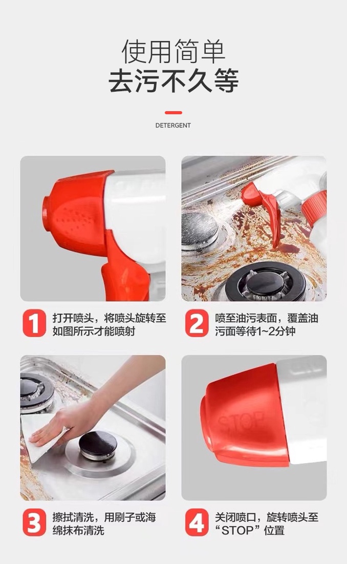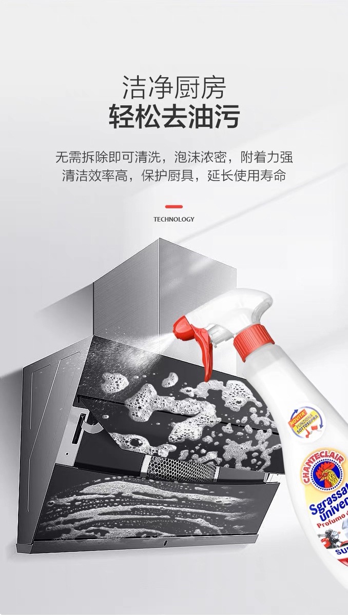 可用于抽油烟机、桌椅、衣物等清洁,一瓶多用