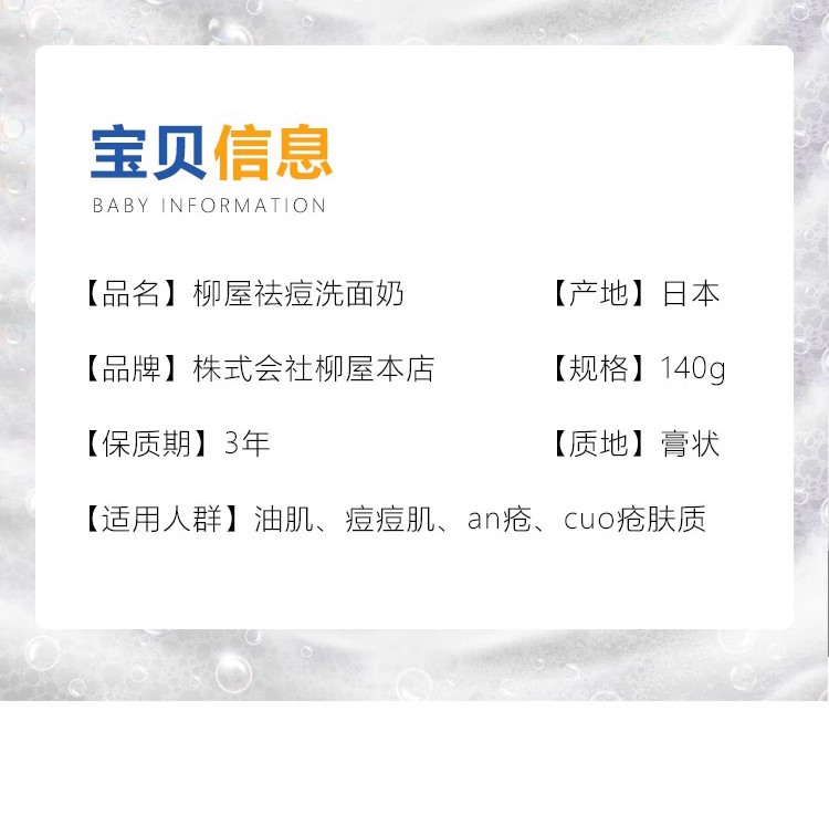 柳屋 祛痘洁面乳 140g