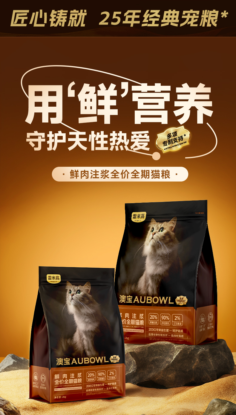 雷米高 澳宝猫粮鲜肉注浆猫粮成猫幼猫呵护肠胃美毛靓肤 澳宝鲜肉注浆全价全期猫粮 2kg
