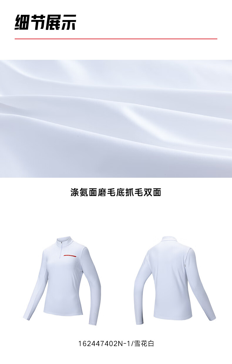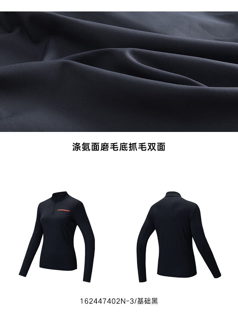 安踏半拉链长袖女冬季新款修身加绒打底衫运动内搭上衣162447402N