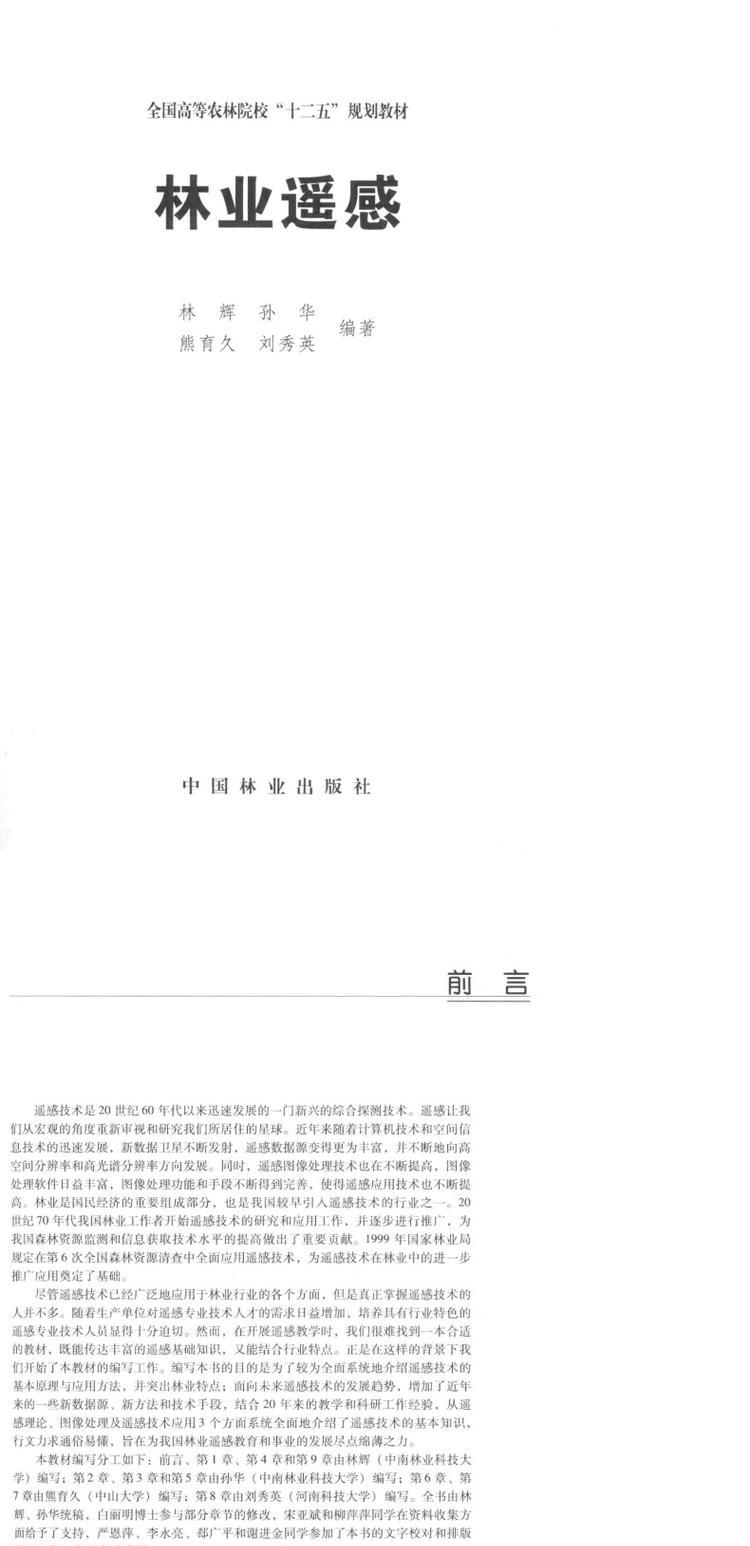 林业遥感 6250 全国高等农林院校十二五规划教材 中国林业出版社官方旗舰店正版畅销书 林业遥感 林辉