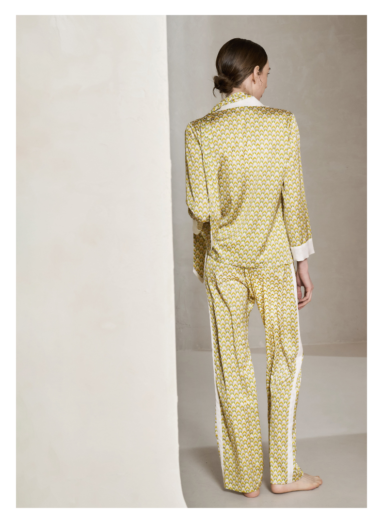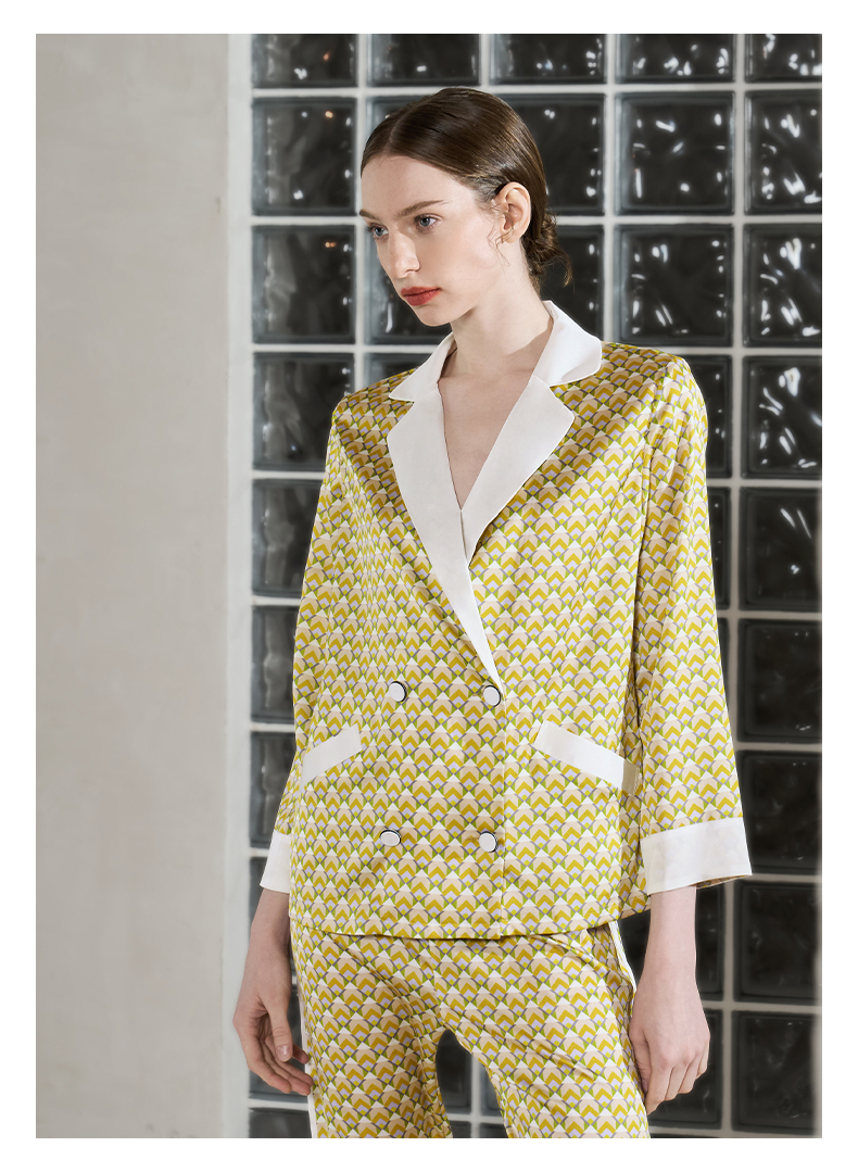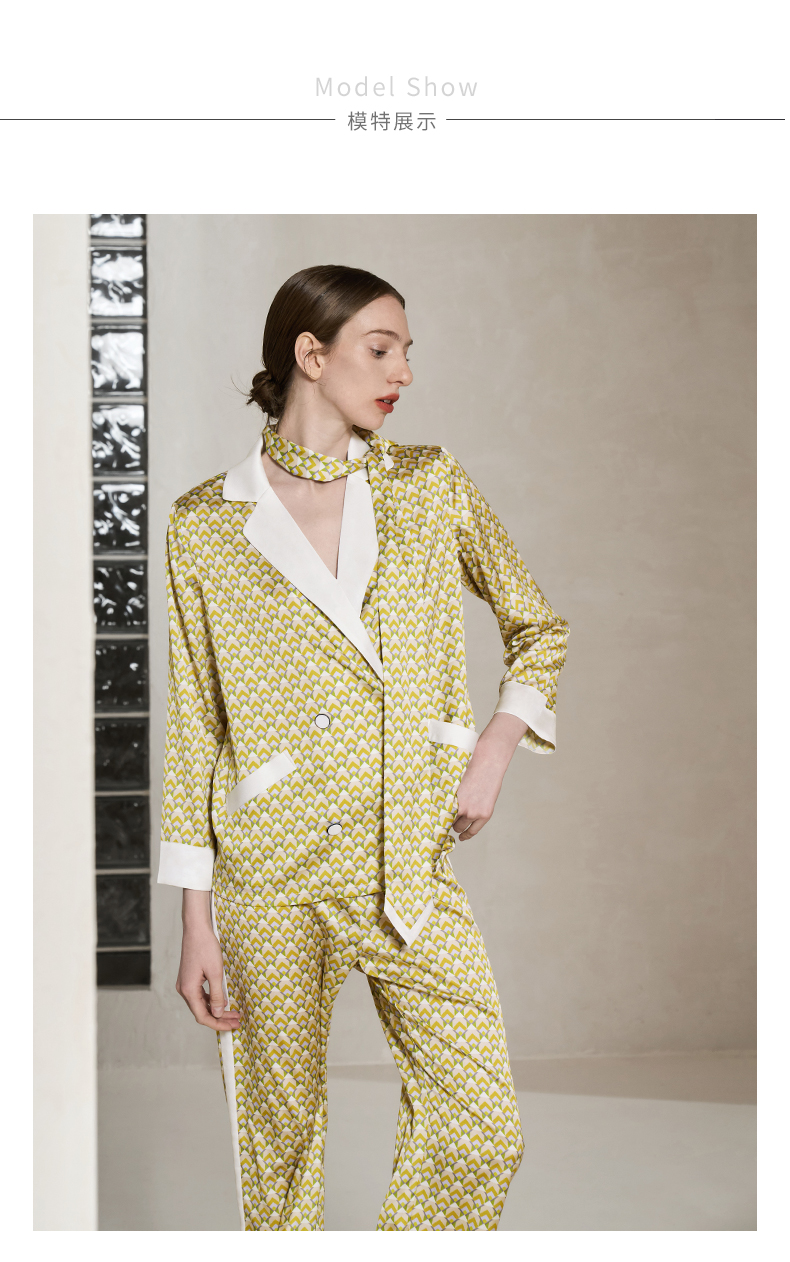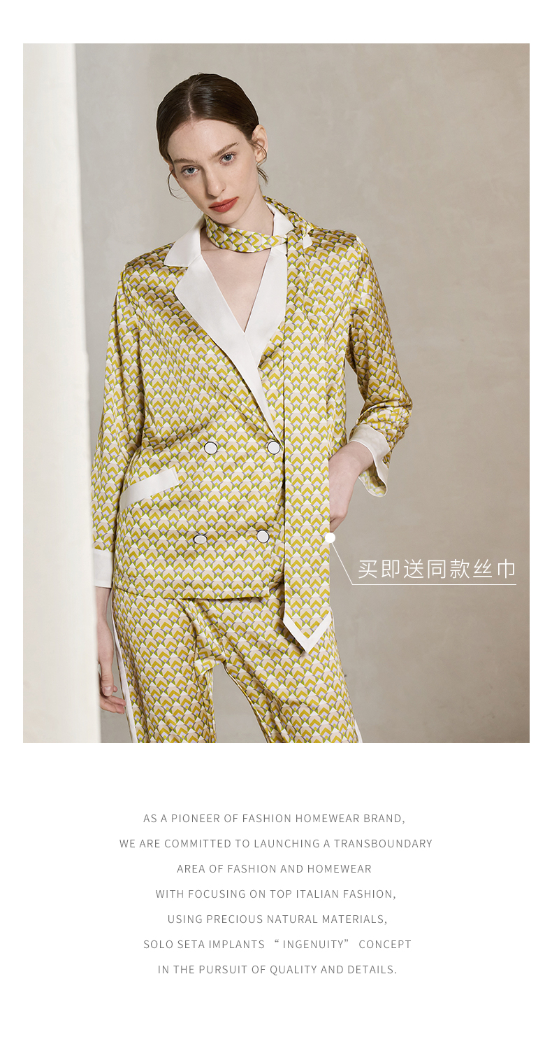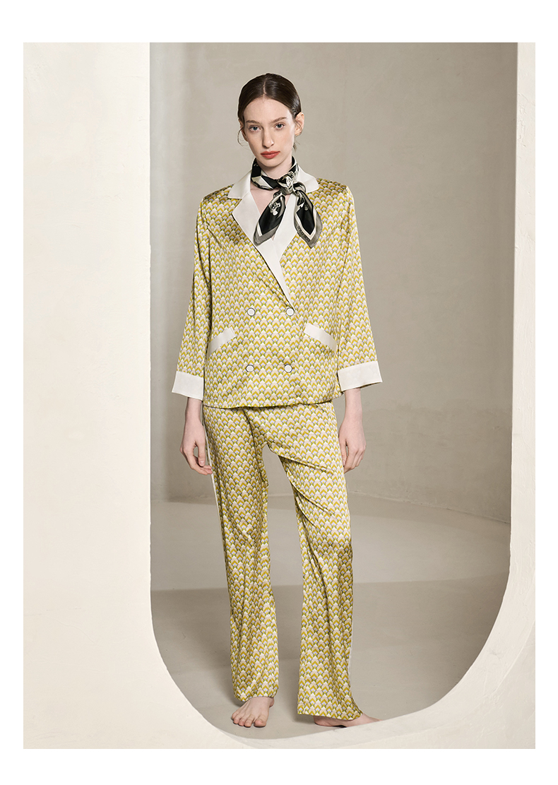 Solo seta22姆米重磅真丝睡衣套装女桑蚕丝丝绸家居服时尚几何秋冬