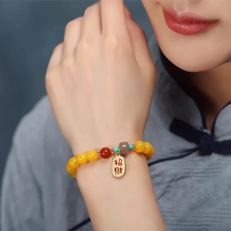 【产品尺寸】蜜蜡珠径约8mm,适合手围约14-16cm