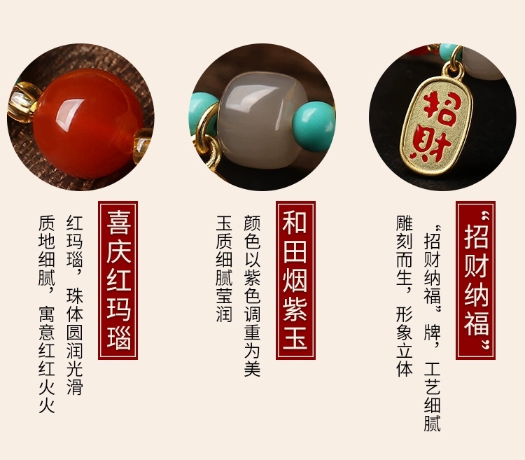 【材质】8mm蜜蜡、3mm天然松石、8mm南红、7*8mm和田玉、合金吊坠