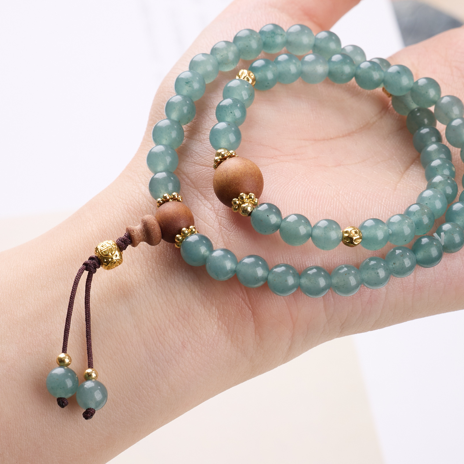 【材质】蓝玉髓、芭比檀、铜镀金配件