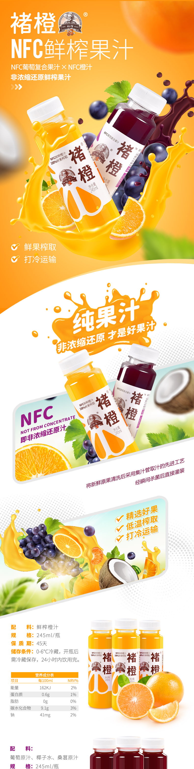 褚橙NFC鲜榨果汁245ml/瓶