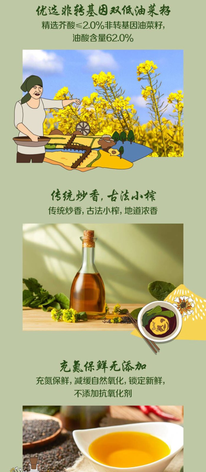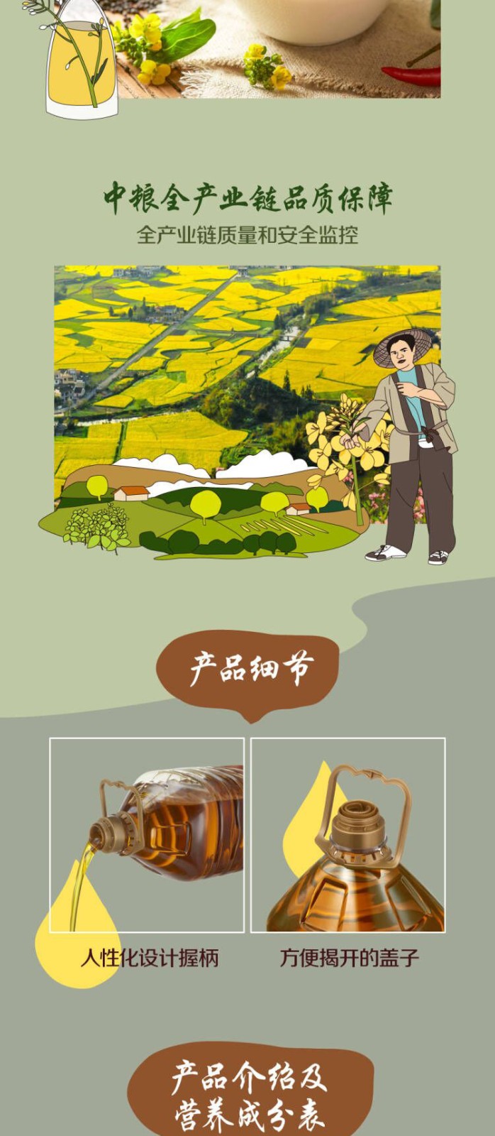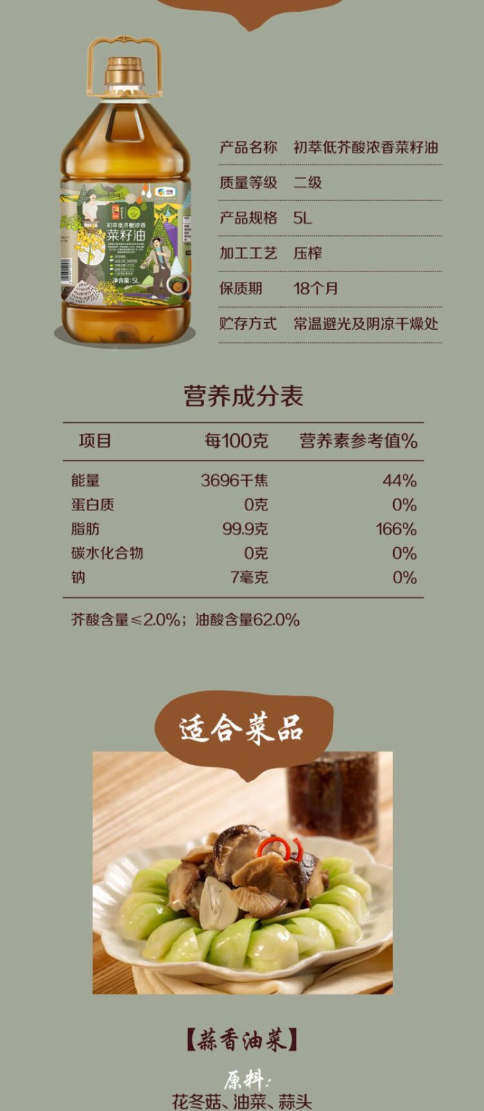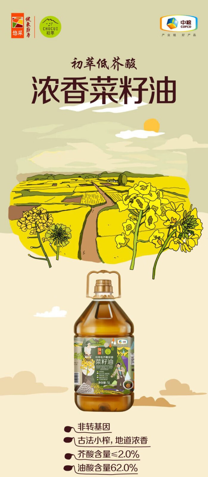 初萃中粮物理压榨低芥酸浓香菜籽油5L 中粮食用油无添加抗氧化剂