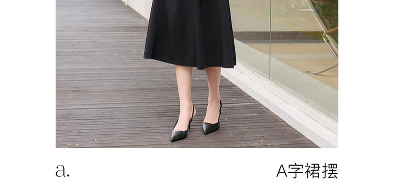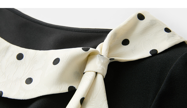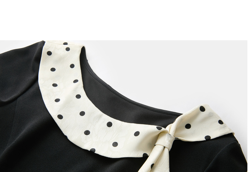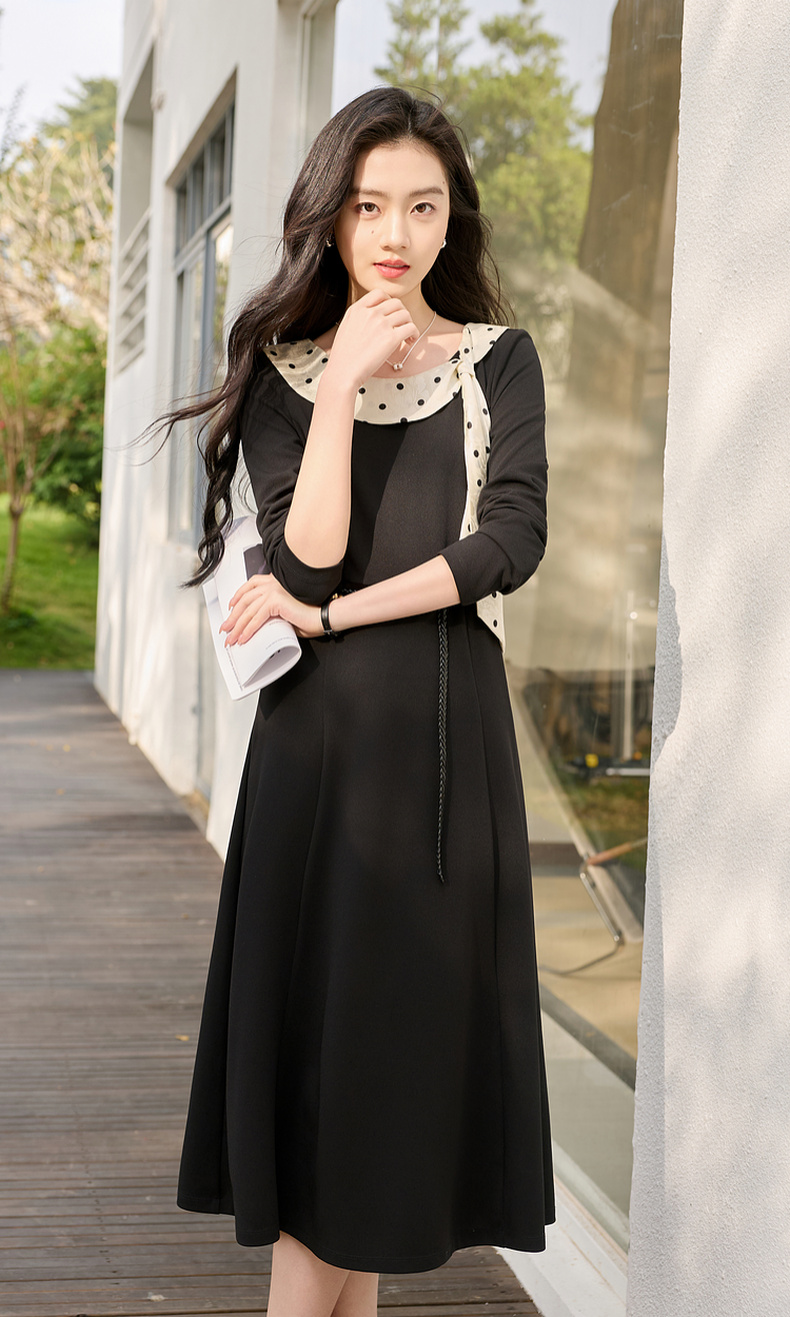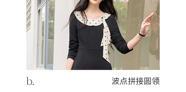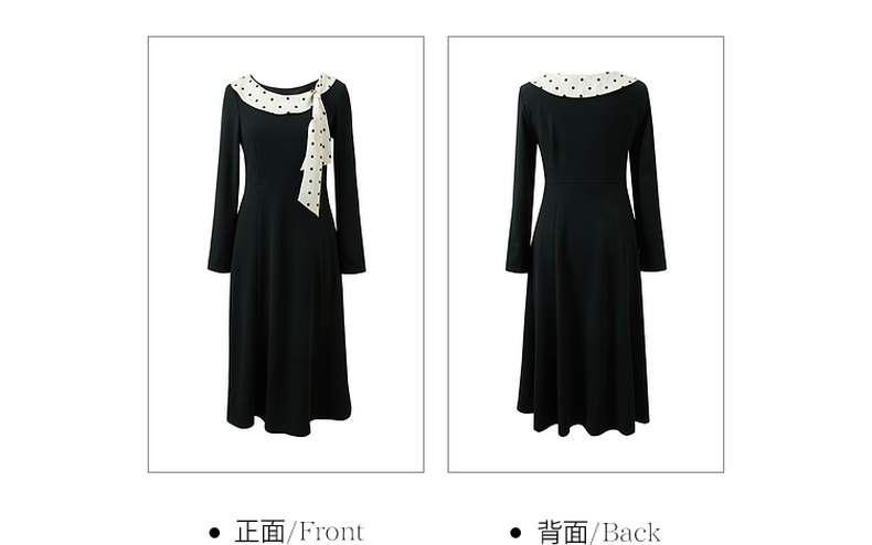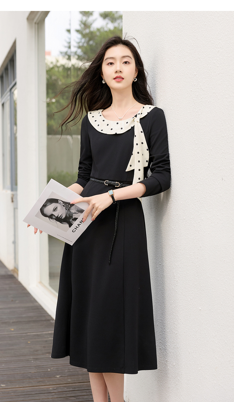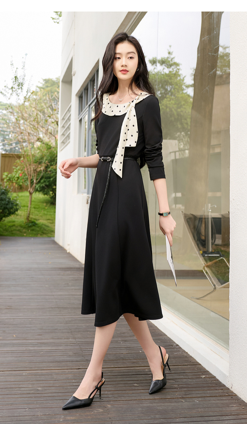 三彩2026春季新款法式连衣裙波点拼接长袖A字裙长裙优雅气质S
