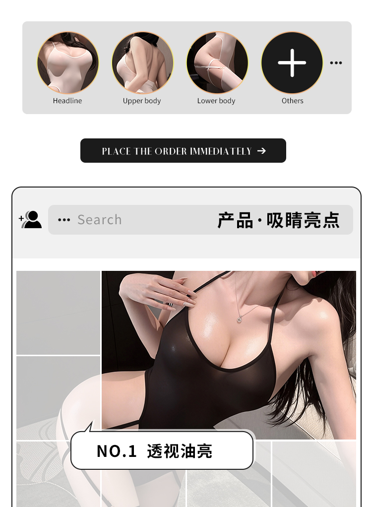 【情趣内衣】霏慕 油光透身PLAY连体套装7012