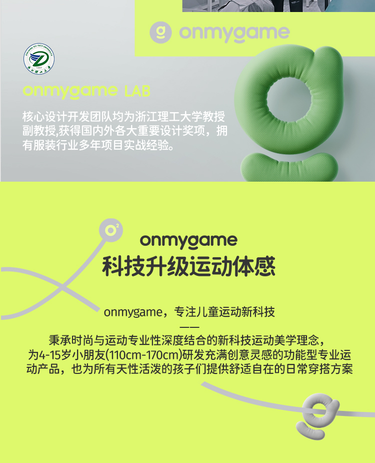 onmygame儿童专业运动品牌男女童款耐脏不易皱,柔软但不软踏