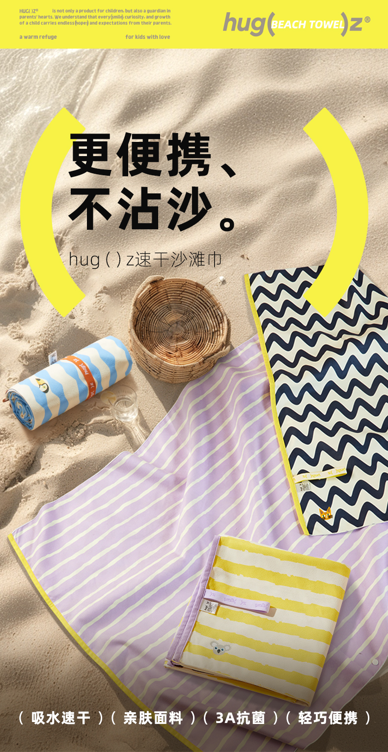【品牌直发】Hugz mimi小众设计师系列 沙滩巾吸水速干便携洗澡运动健身游泳沙滩巾系列70* 140cm,🎁旅途的完美搭档❗️