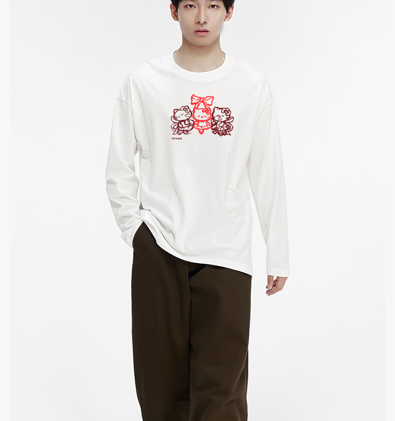 「棉的美学」甜味Kitty猫秋长袖T恤2024新款少女休闲显瘦纯棉打底衫