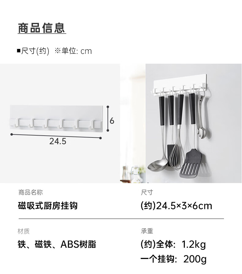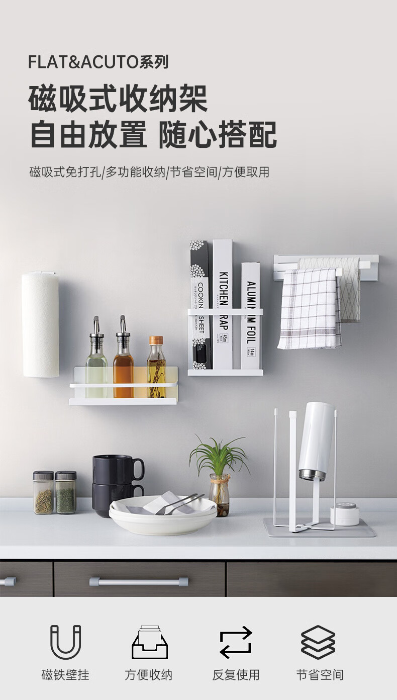 磁吸式日式厨房置物架厨房挂钩架免打孔FLAT 26ACUTO