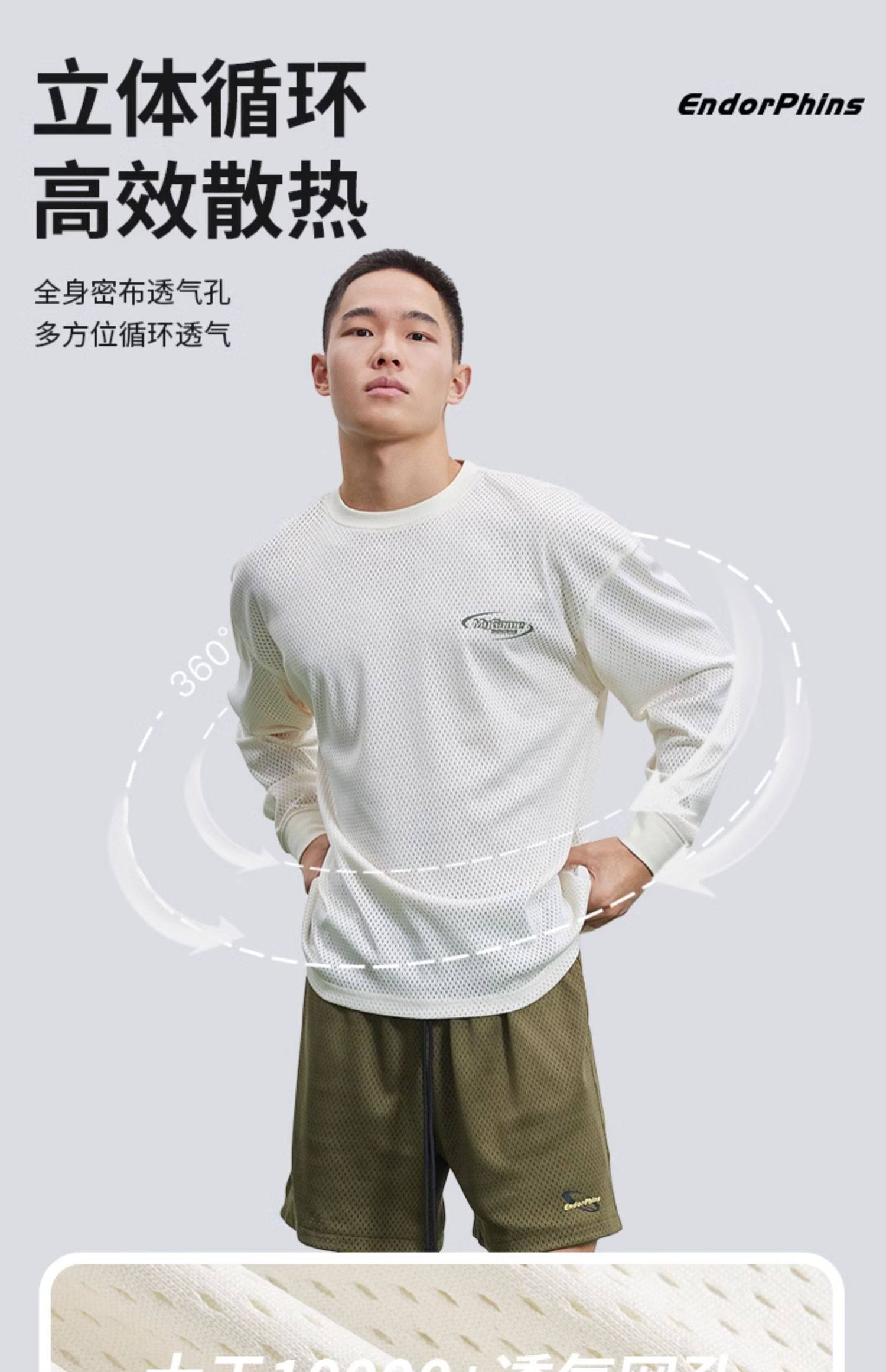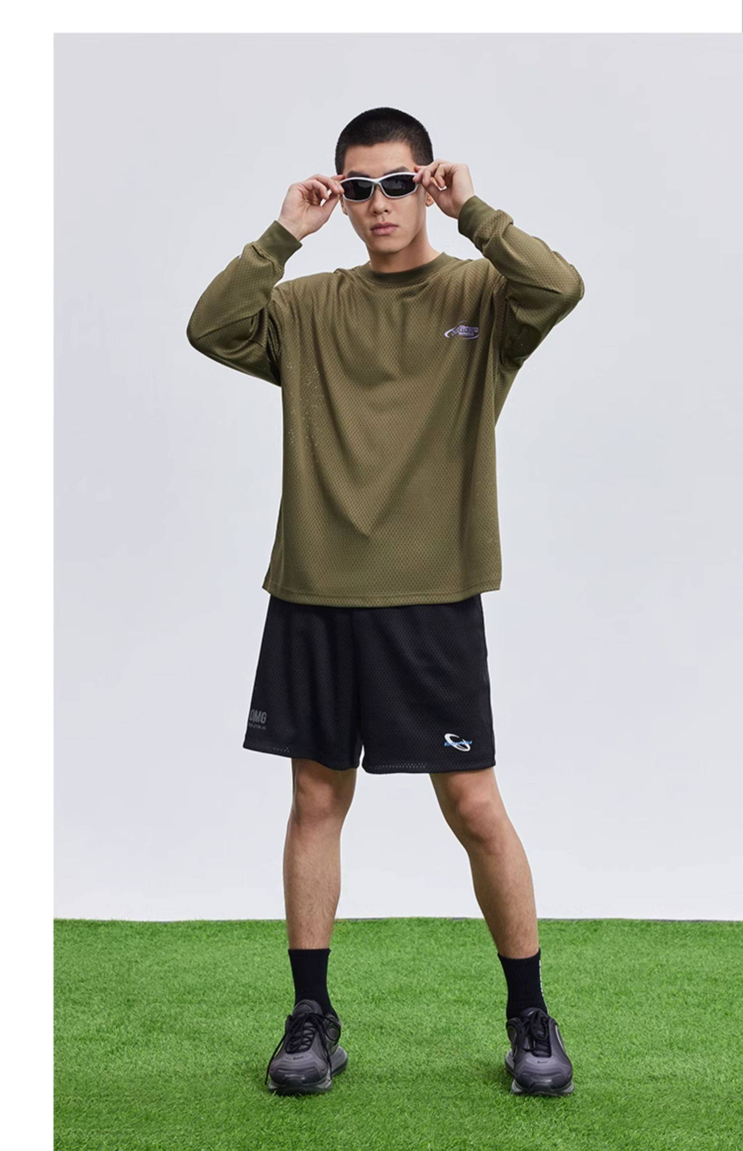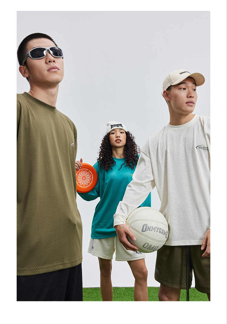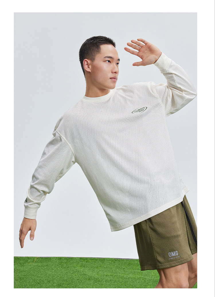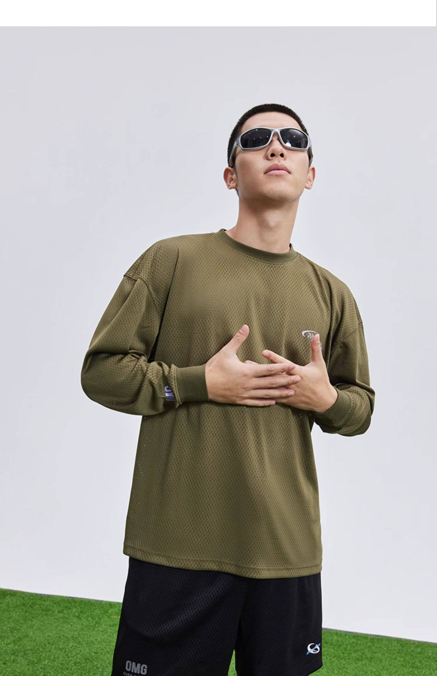 OMG运动 网孔长袖透气吸湿排汗健身服男篮球训练服网眼飞盘服t恤