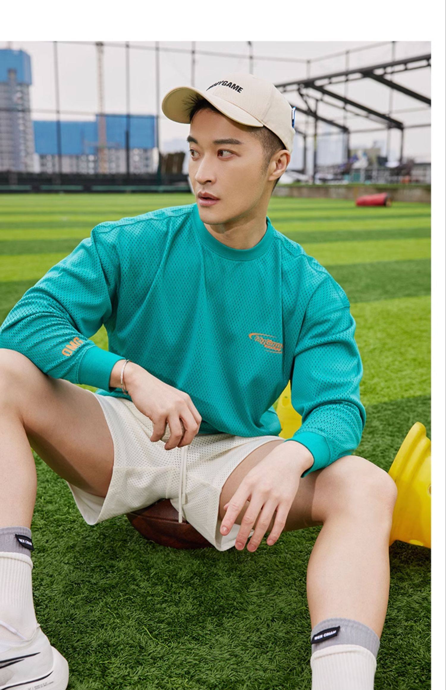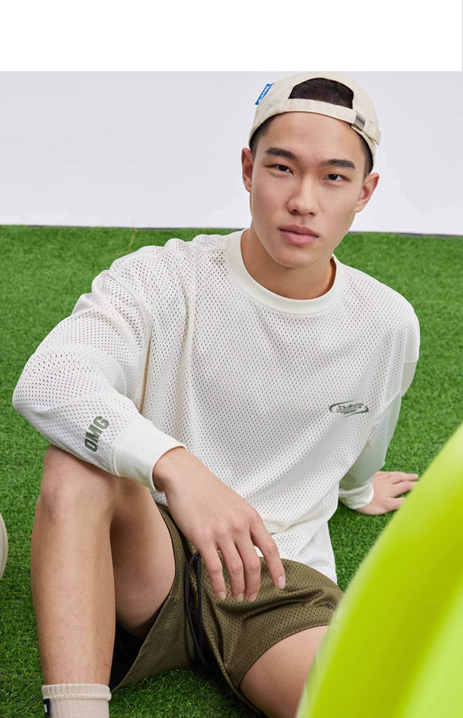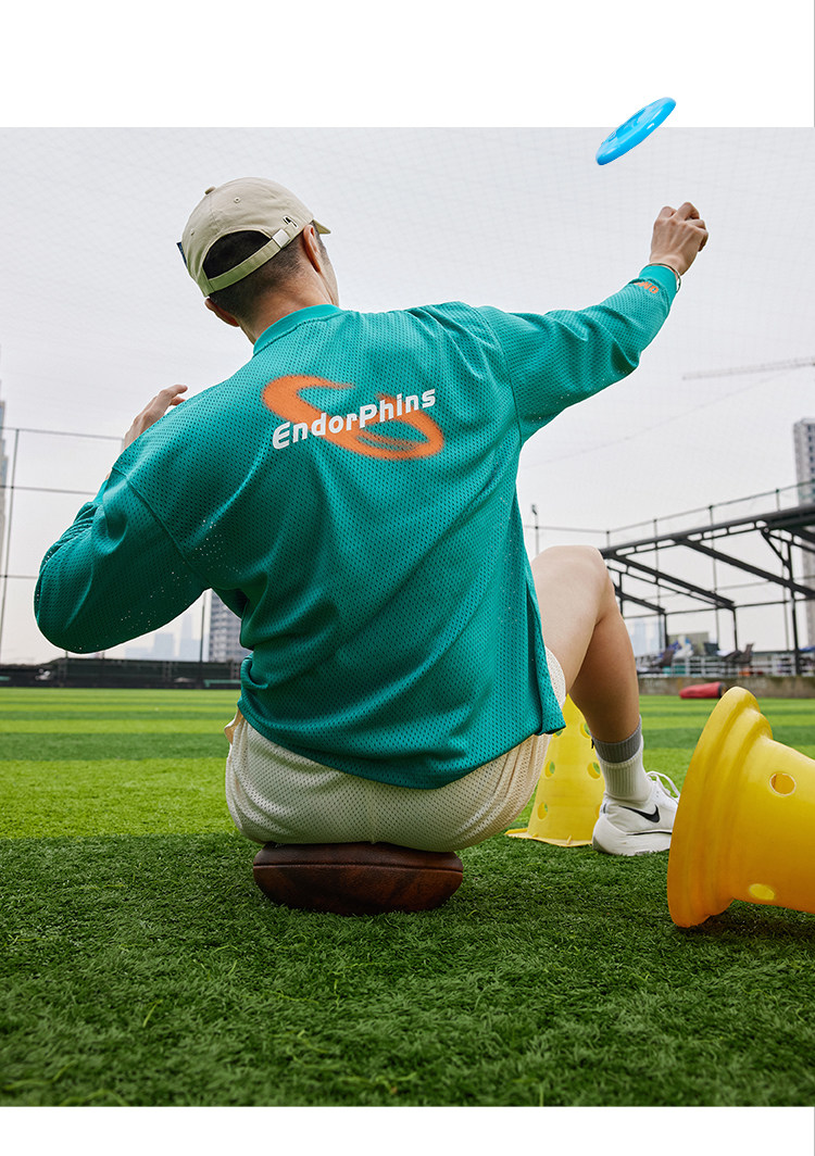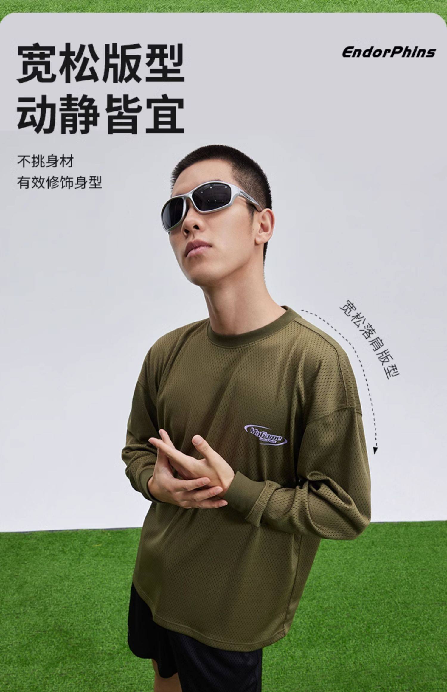 OMG运动 网孔长袖透气吸湿排汗健身服男篮球训练服网眼飞盘服t恤