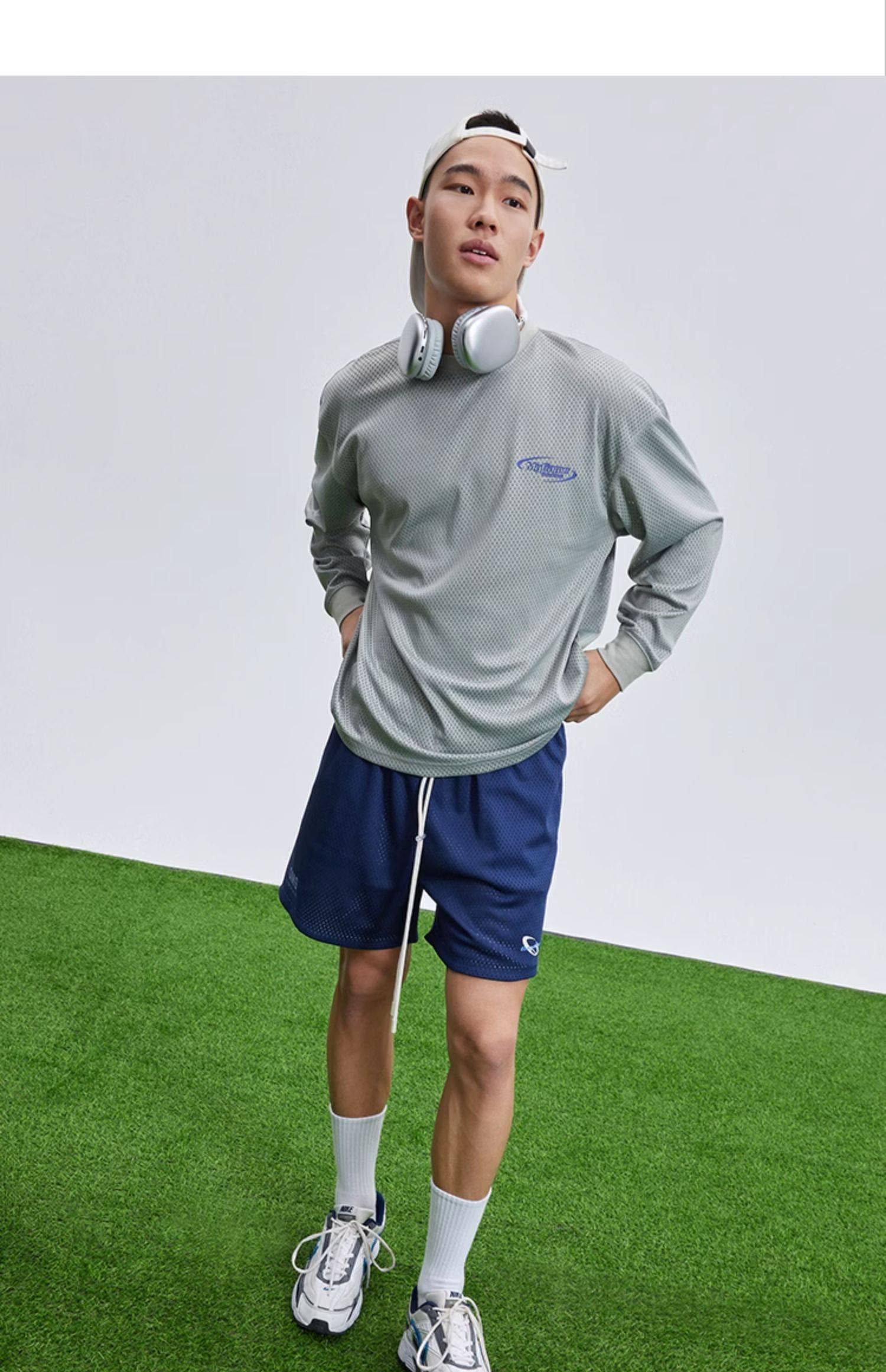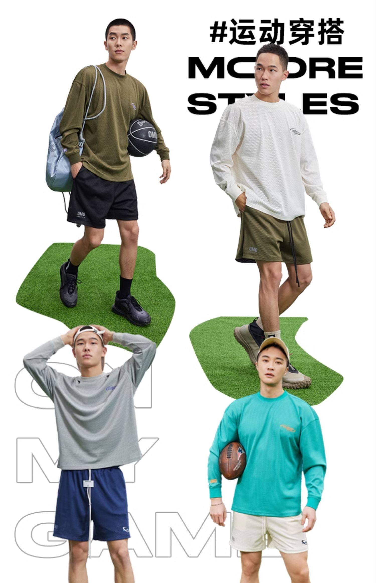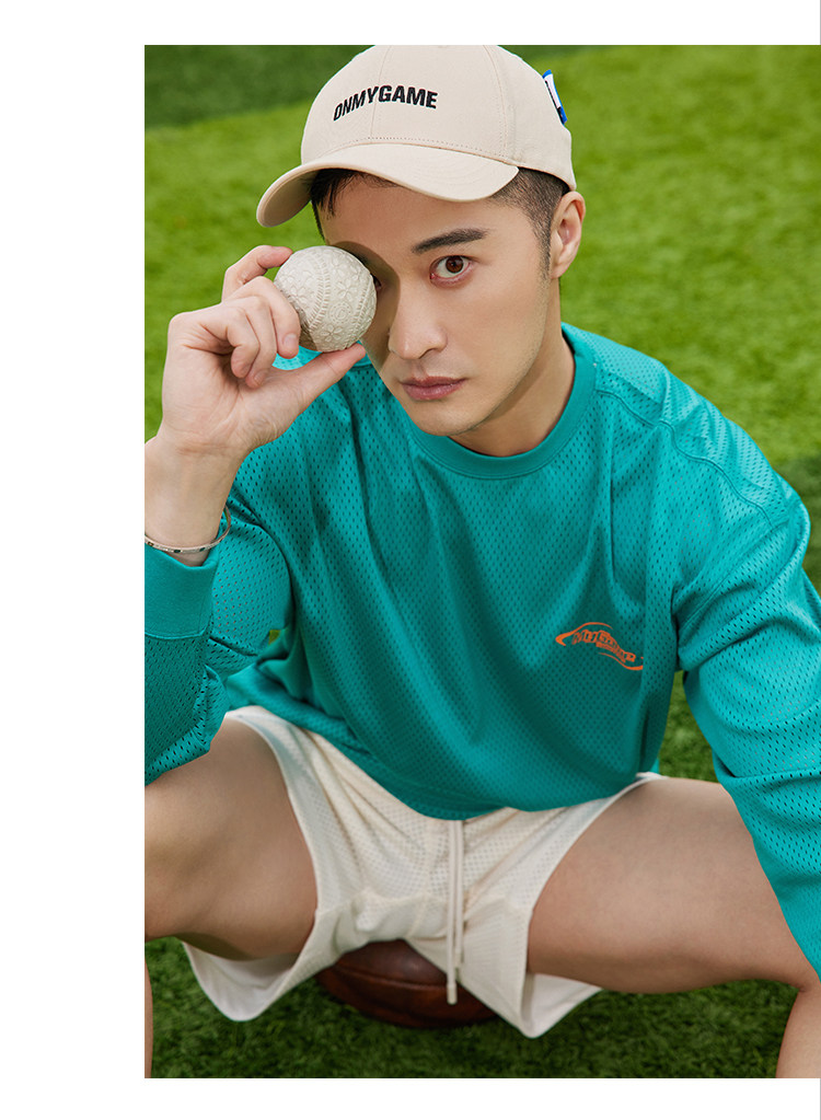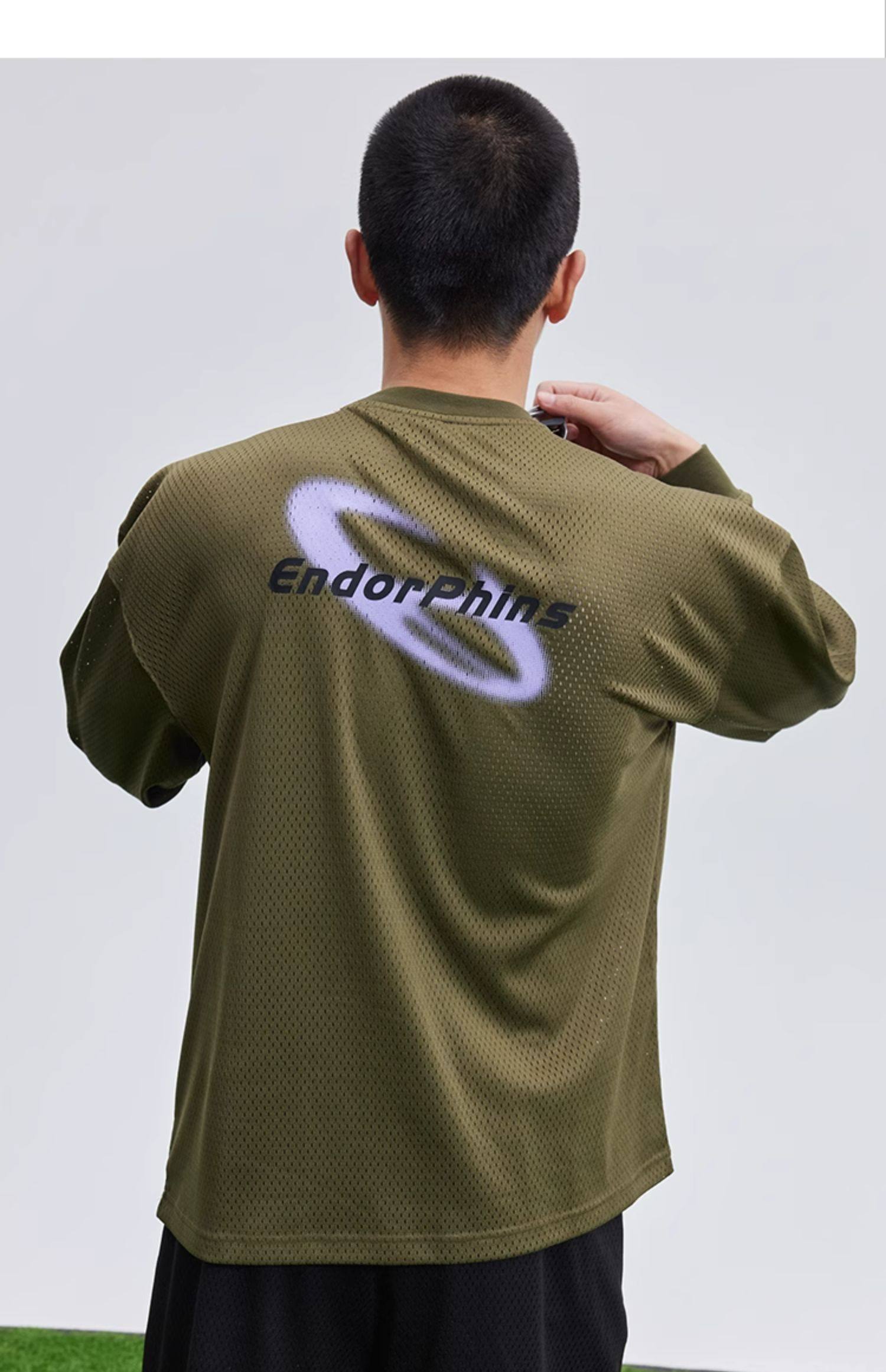 OMG运动 网孔长袖透气吸湿排汗健身服男篮球训练服网眼飞盘服t恤