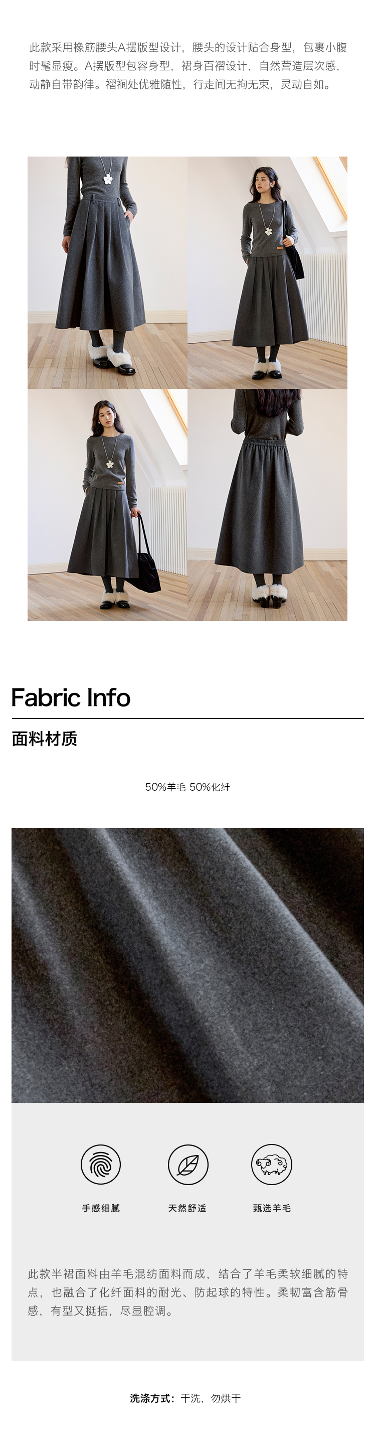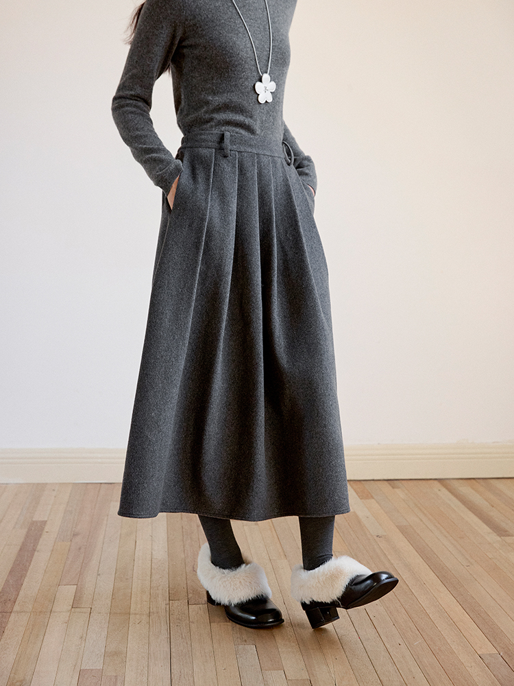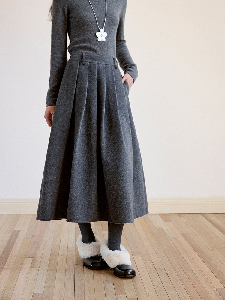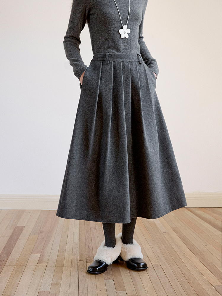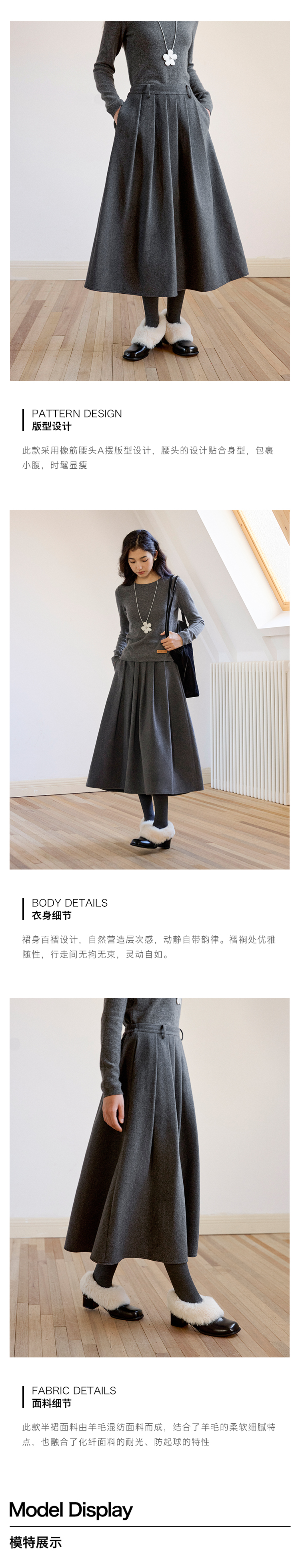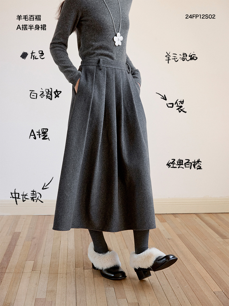 ForPoem 现货 24/FW原创设计中长款百搭羊毛百褶A摆半身裙