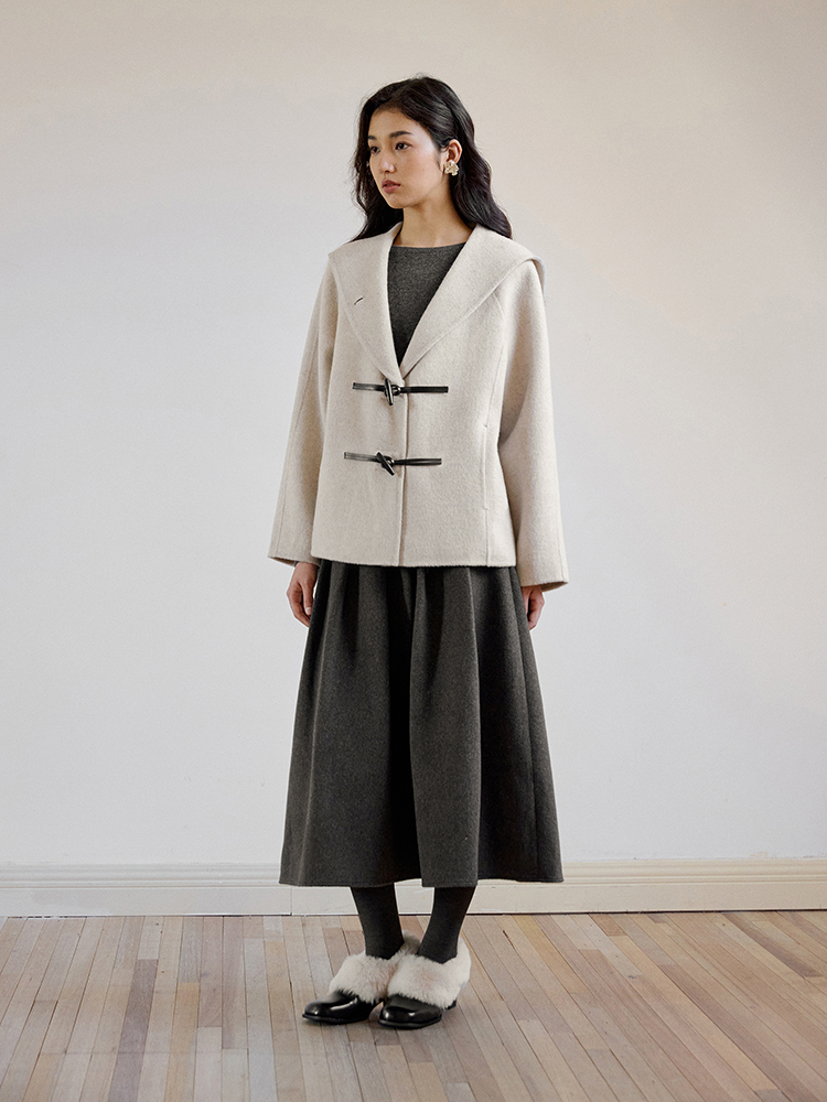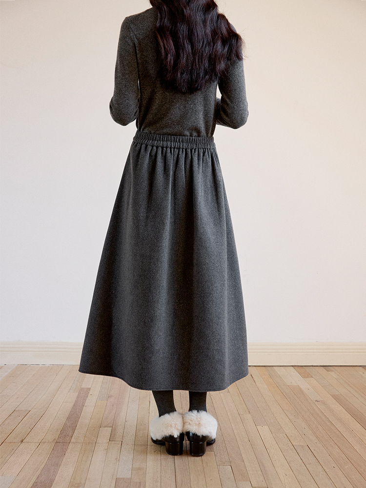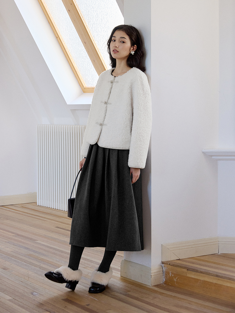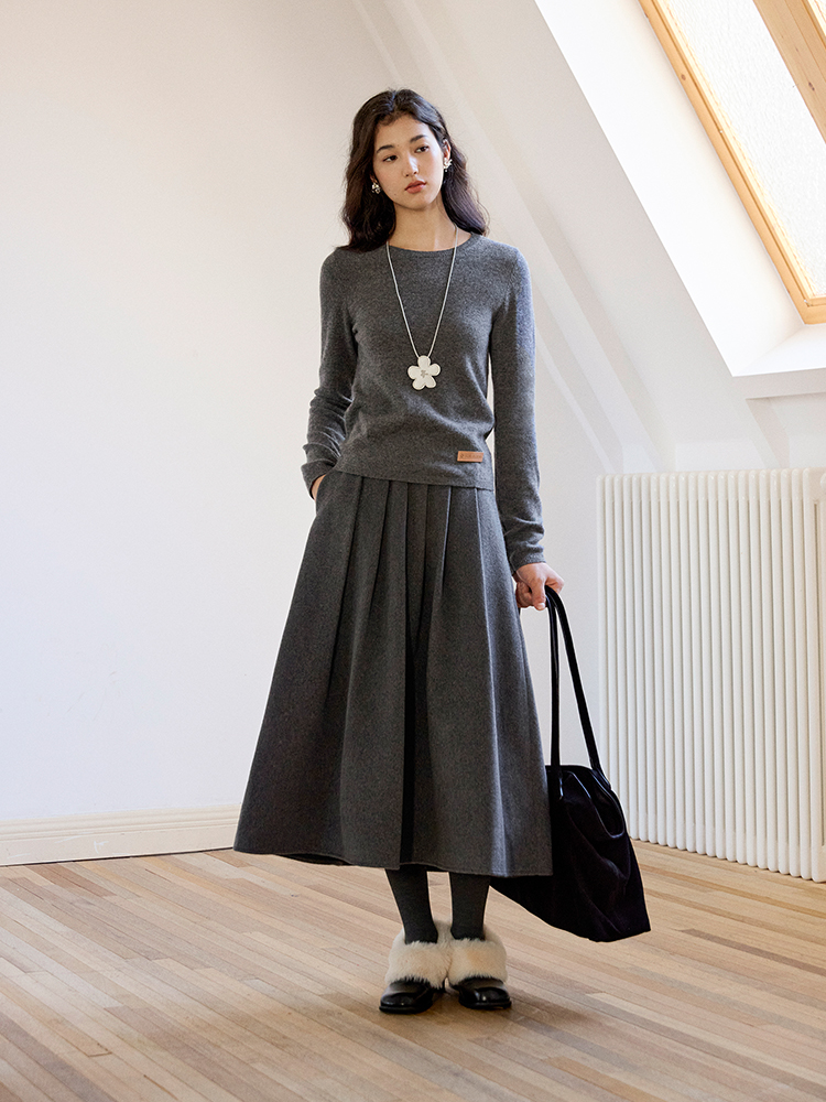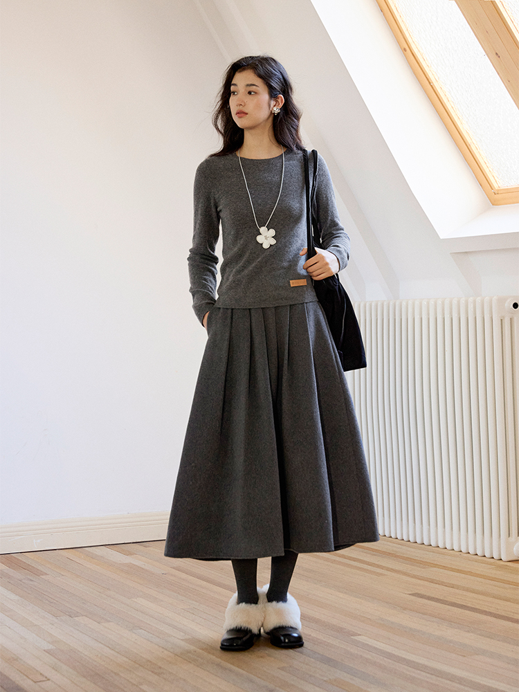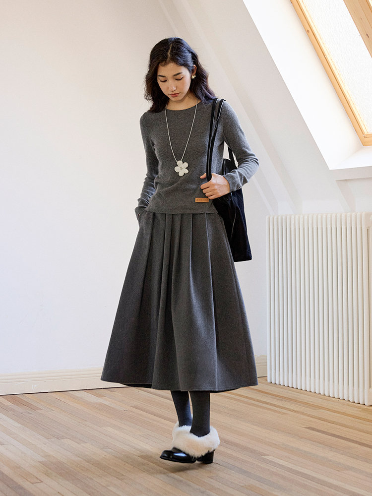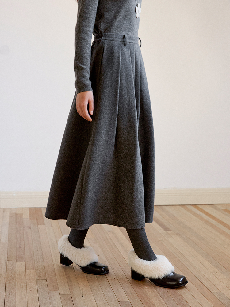 ForPoem 现货 24/FW原创设计中长款百搭羊毛百褶A摆半身裙