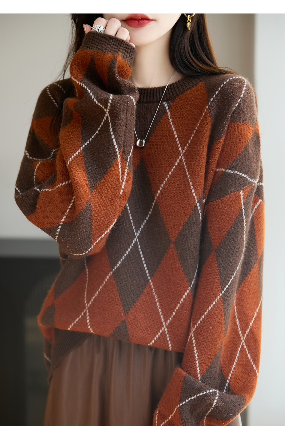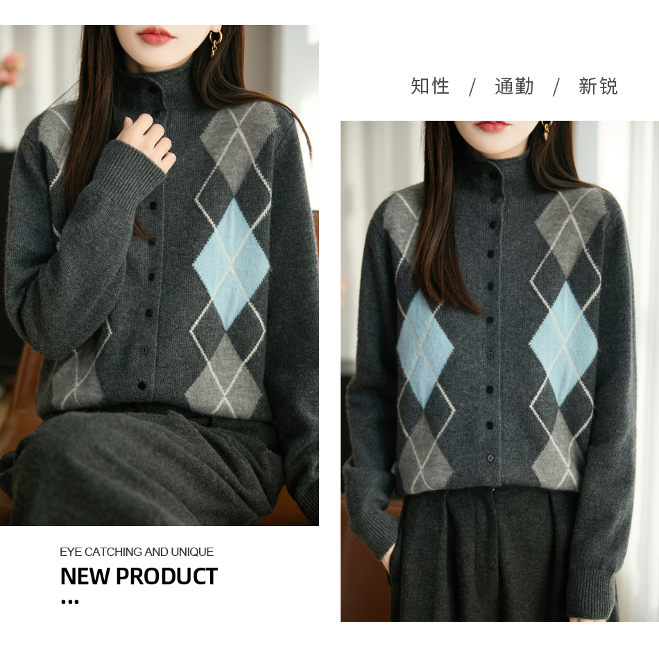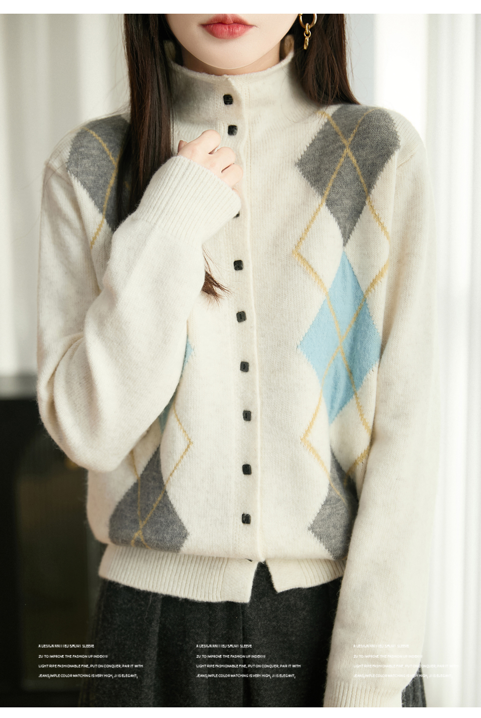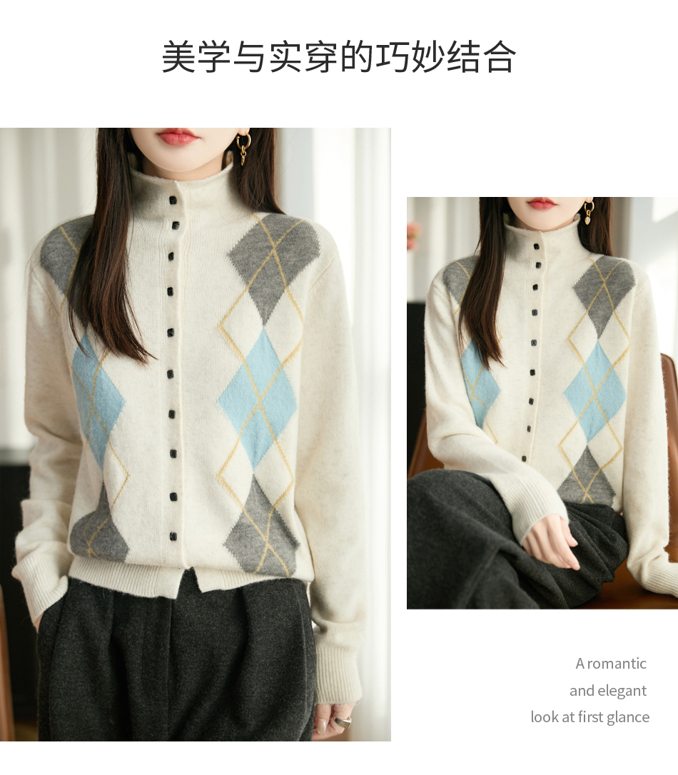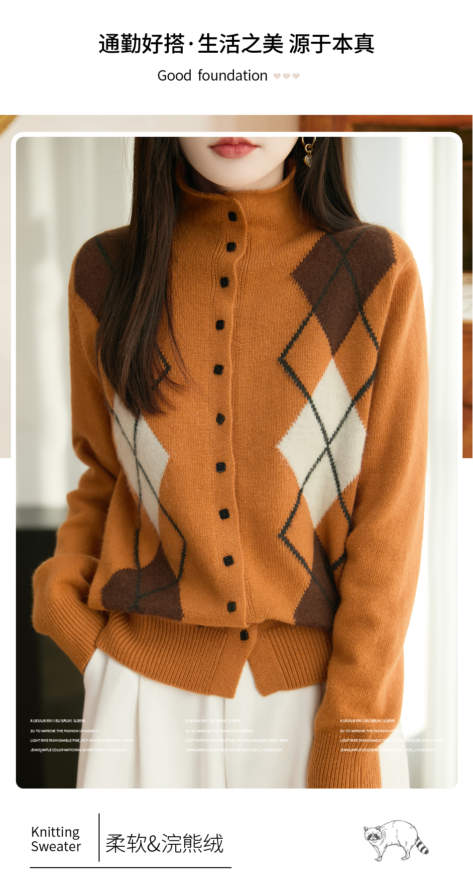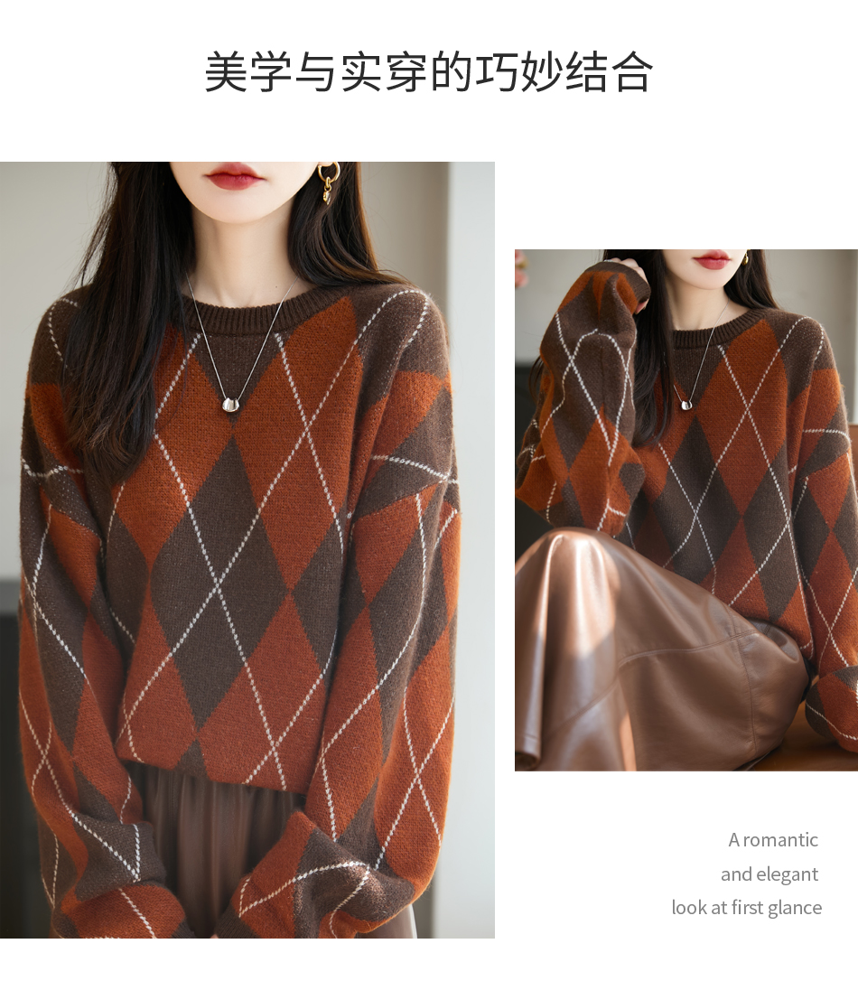 「纤束马」浣熊绒菱形格毛衣 , 传递出复古文艺的英伦气息,是时尚界的永恒经典