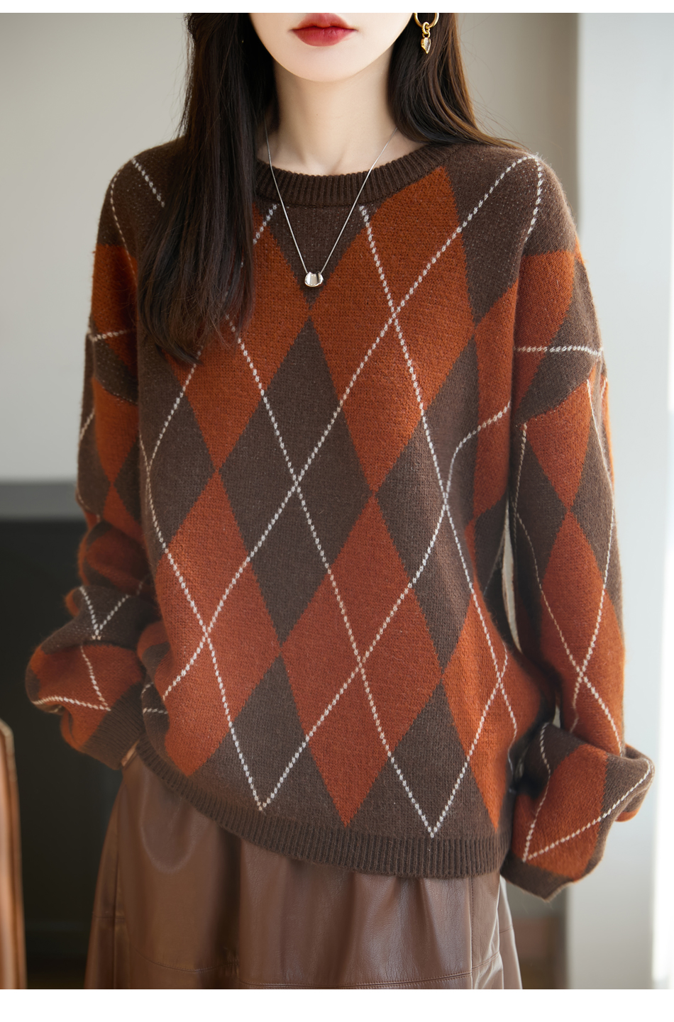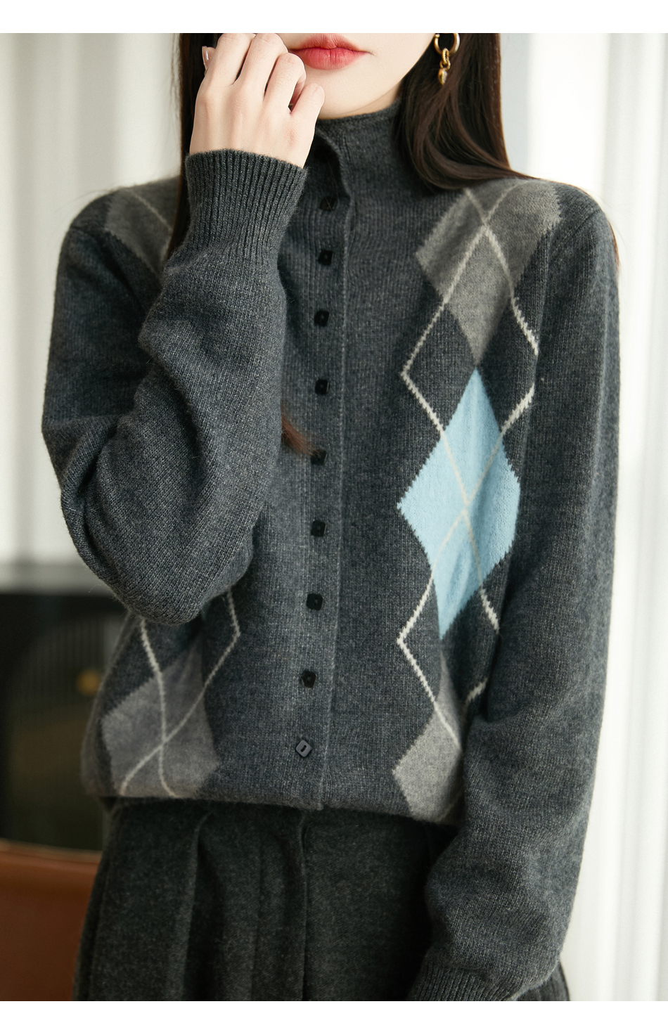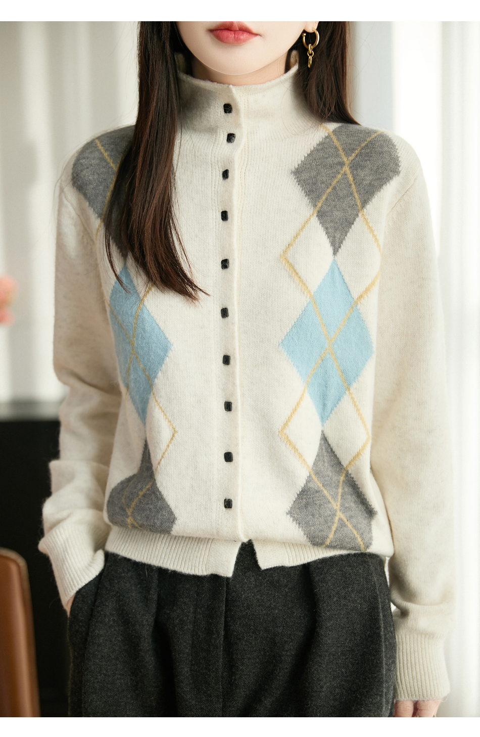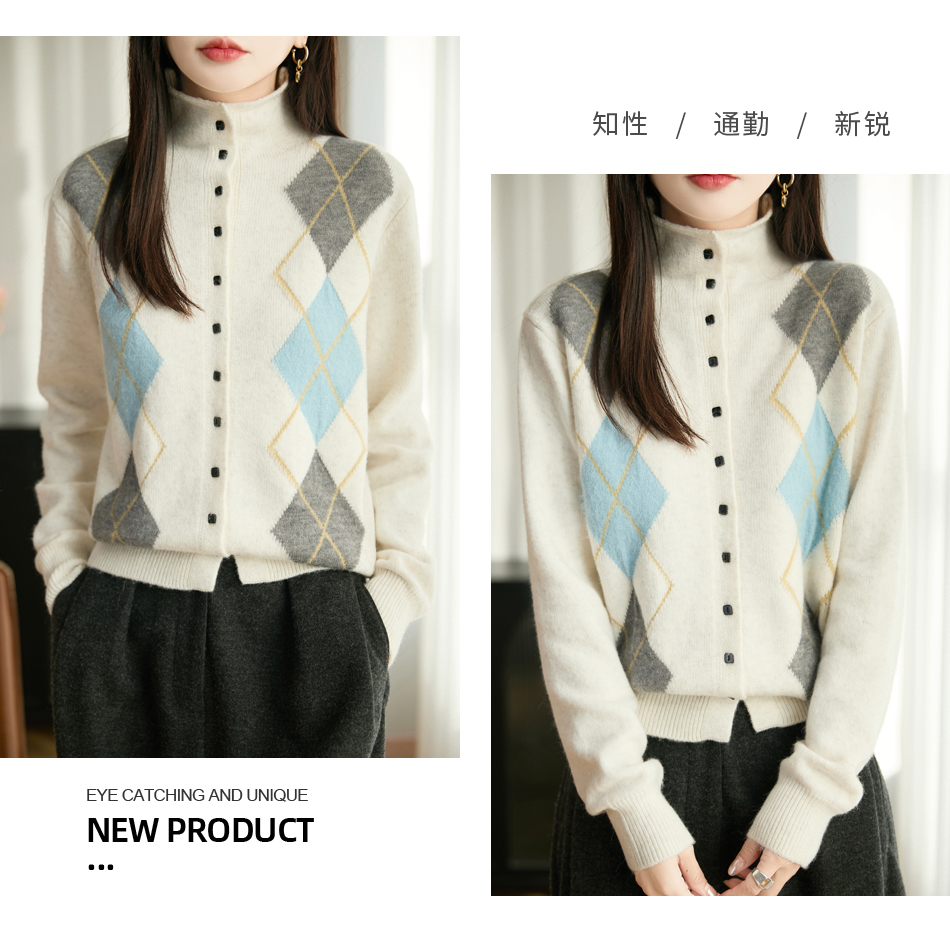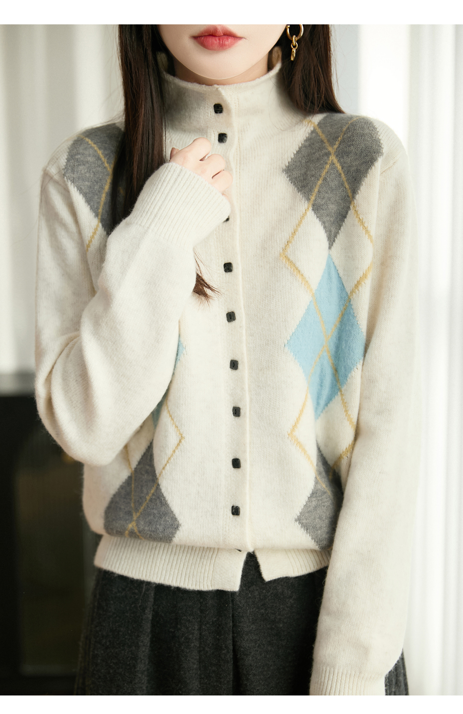 「纤束马」浣熊绒菱形格毛衣 , 传递出复古文艺的英伦气息,是时尚界的永恒经典