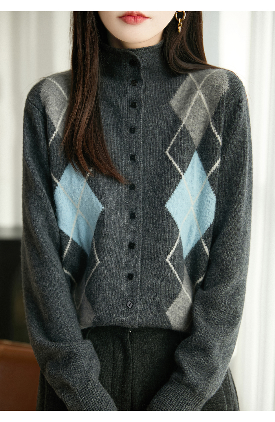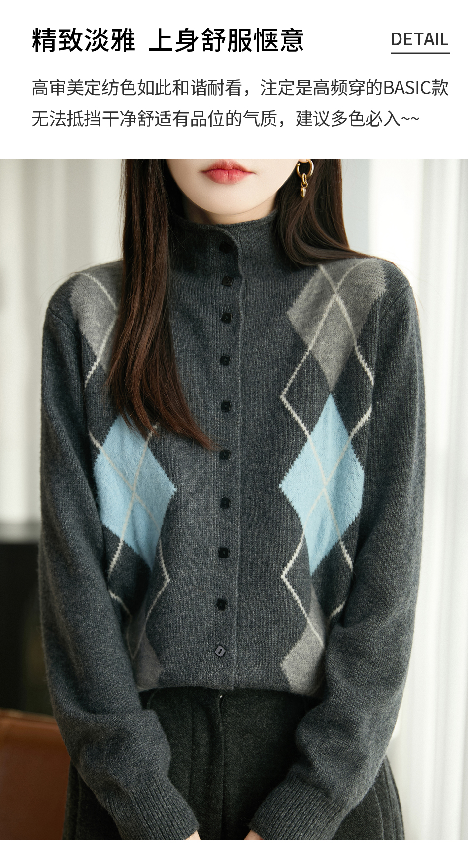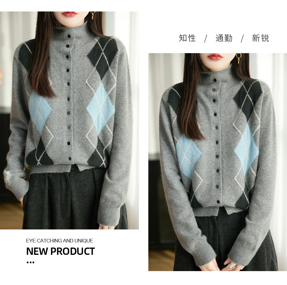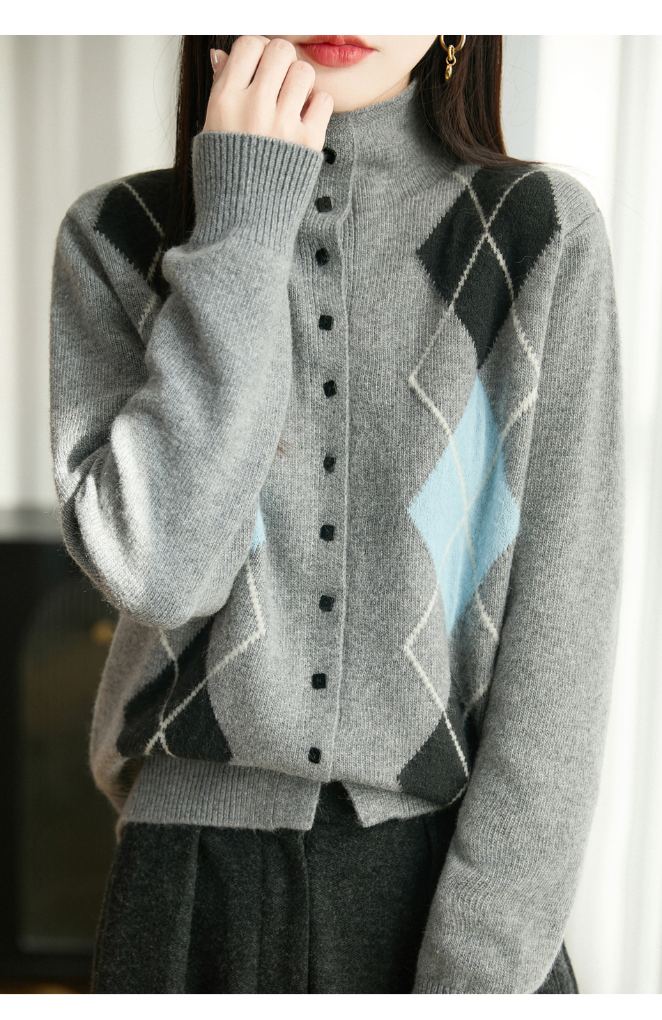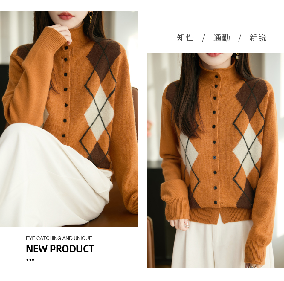 「纤束马」浣熊绒菱形格毛衣 , 传递出复古文艺的英伦气息,是时尚界的永恒经典