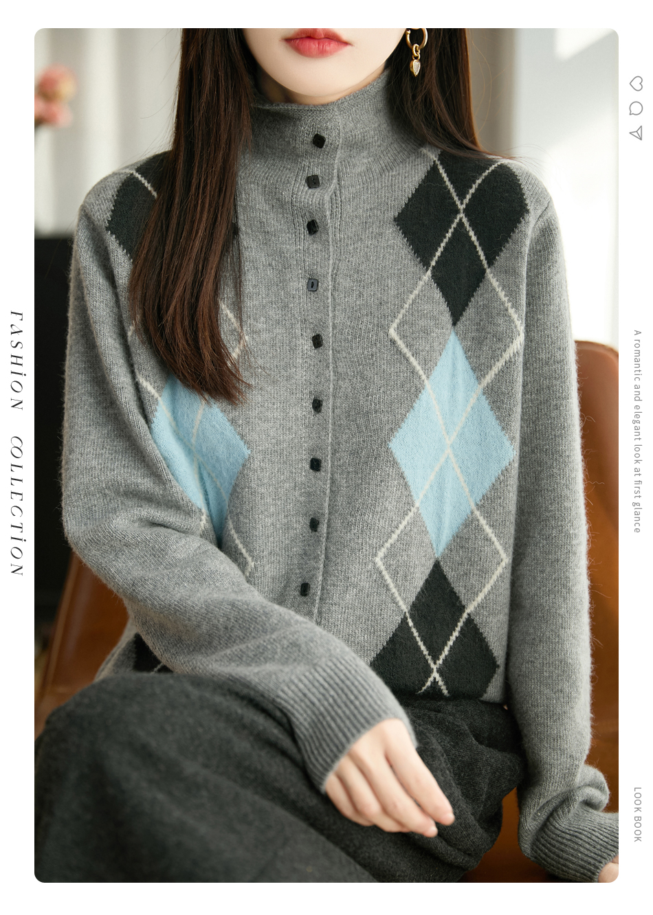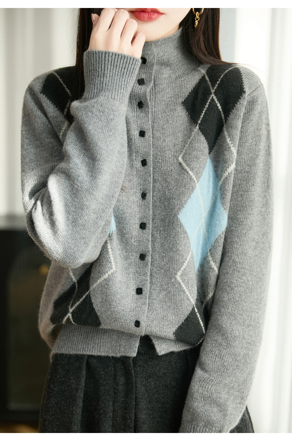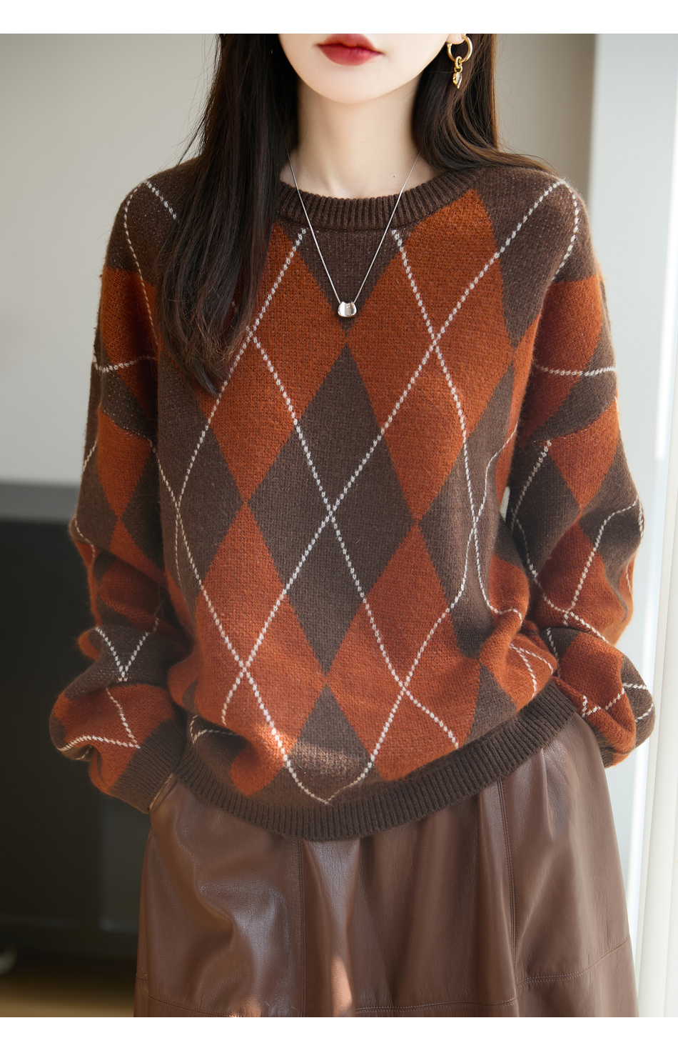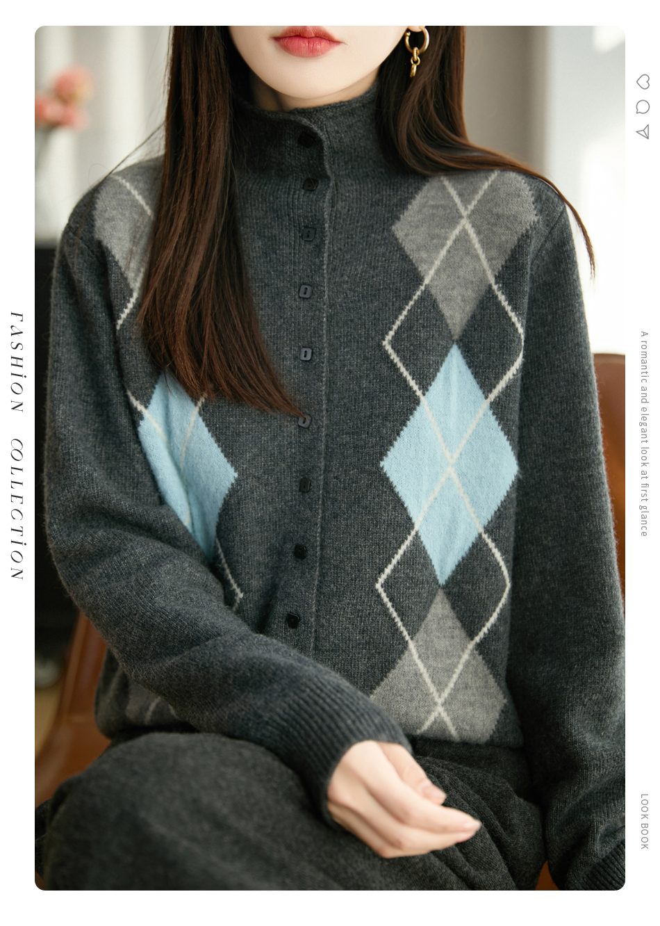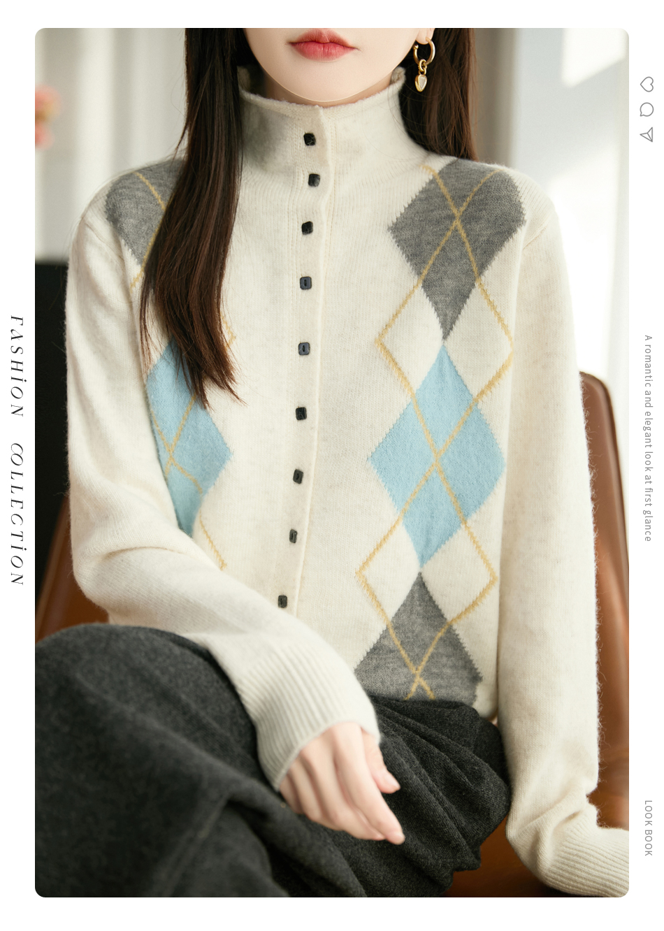 「纤束马」浣熊绒菱形格毛衣 , 传递出复古文艺的英伦气息,是时尚界的永恒经典